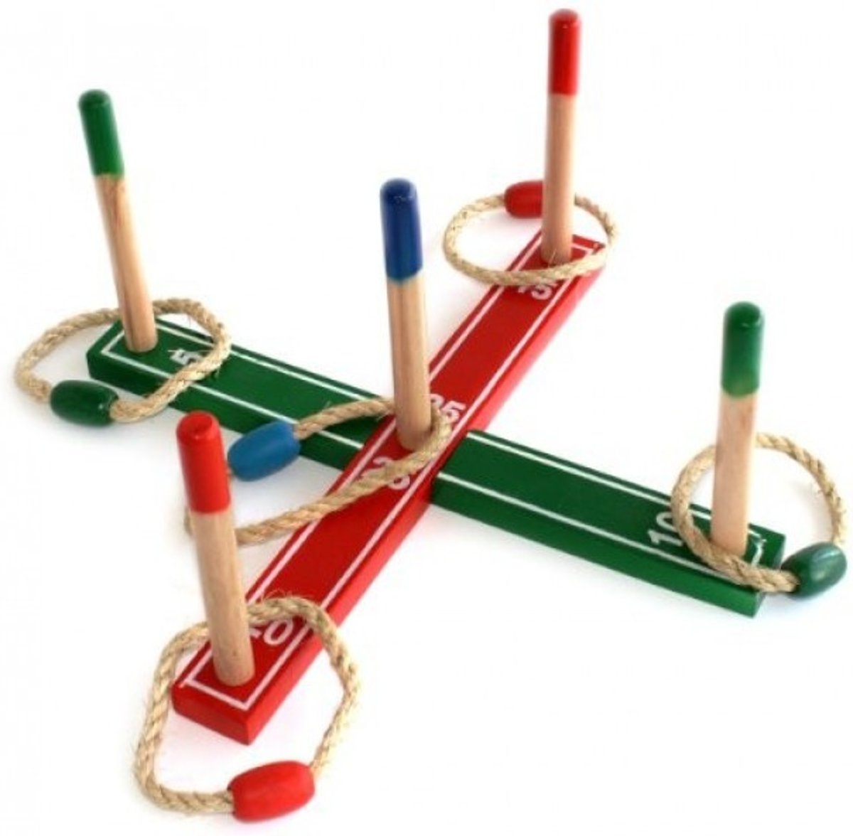 - Croquet and pittenzak gooien - 2-in-1 spellen - echt houten onderdelen met vrolijke illustraties - in handige bewaartas