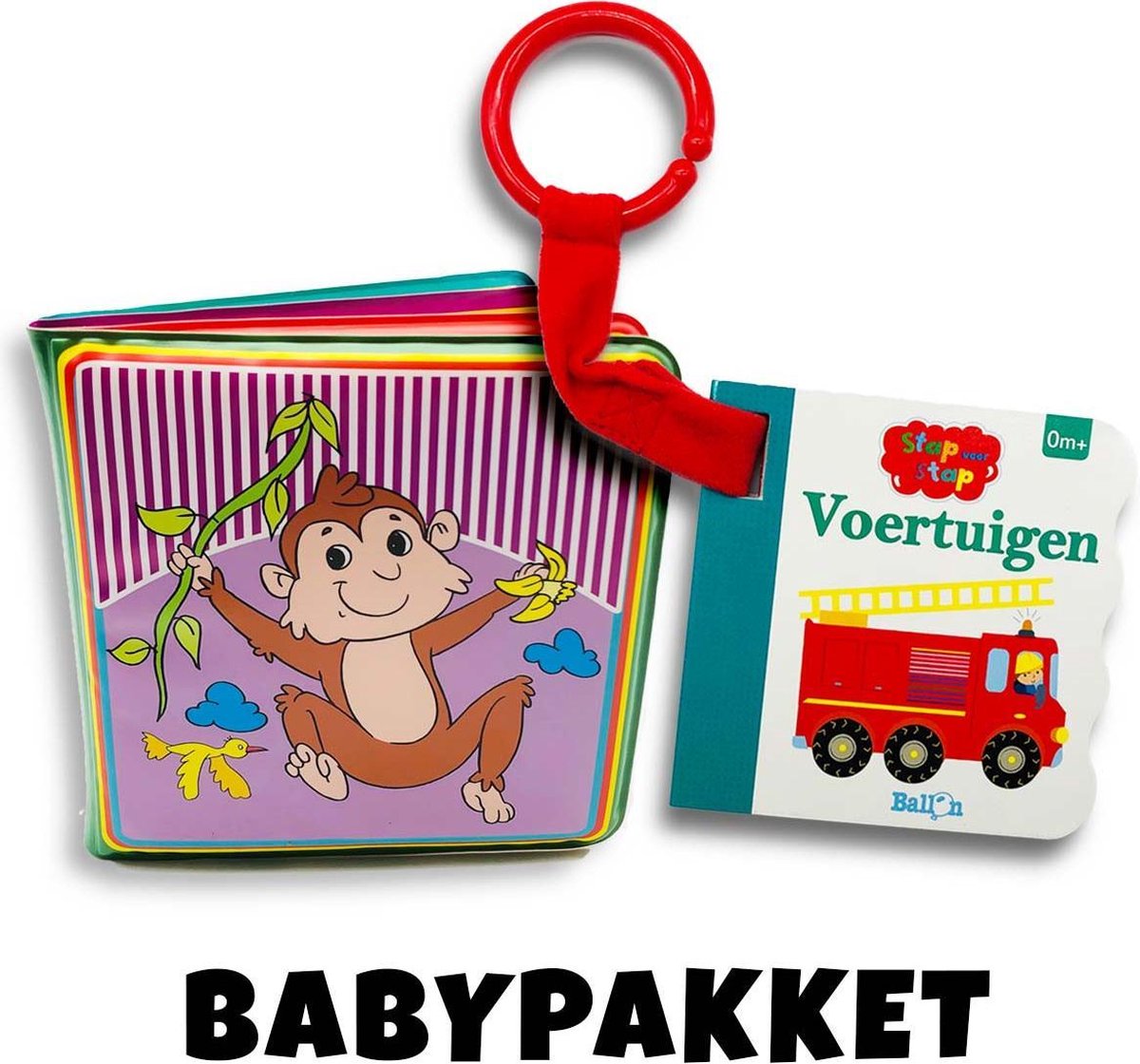 - First Fun Stroller Book - Bijtboekje - Bijtprofiel - Baby boek -baby boekje 0-6 maanden - Bijtring - baby boekje met geluid