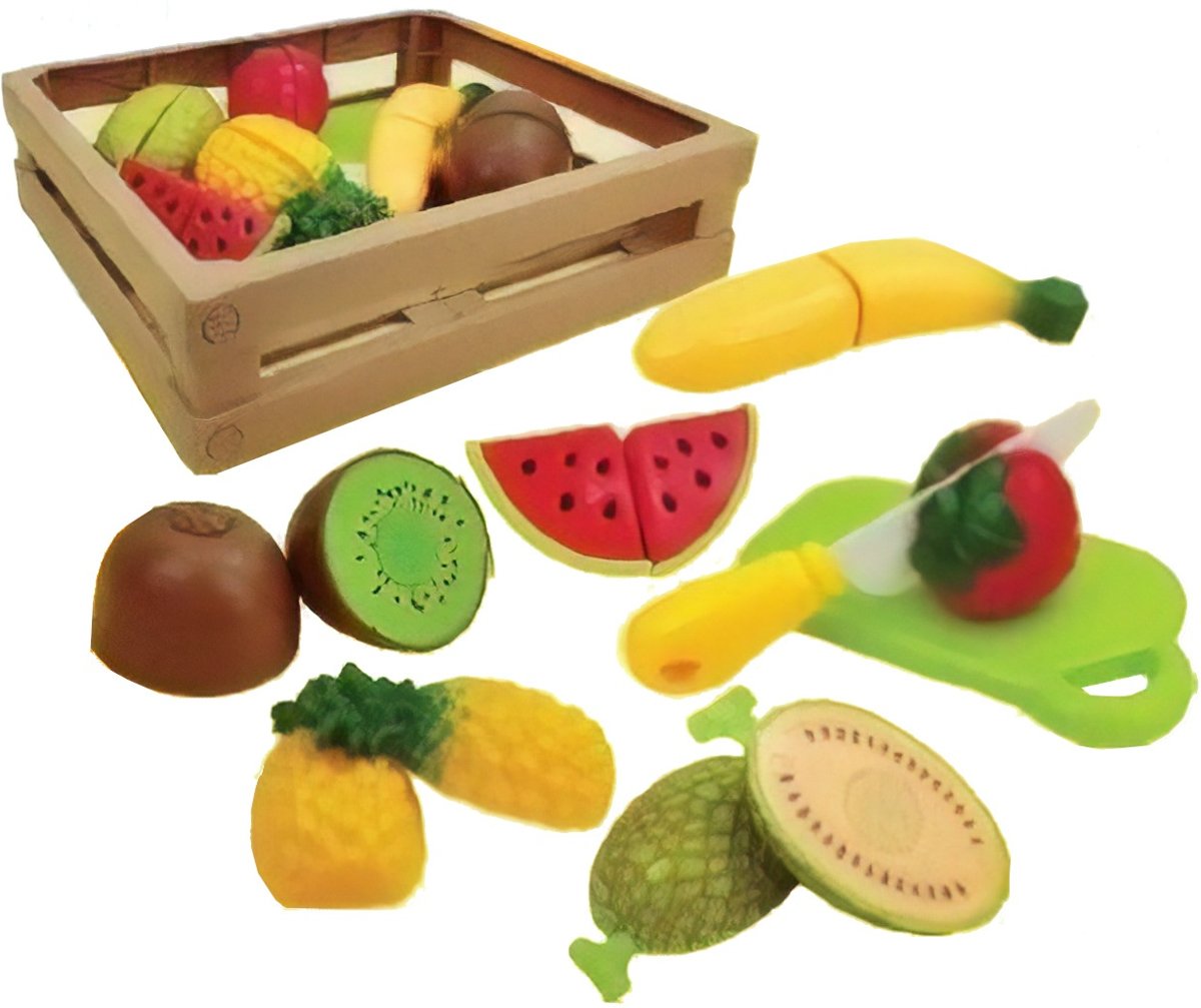 Houten Speelgoed Snijset "Fruit en Groenten" met Snijplank, Mes, Net en Doos 13-delig 4891