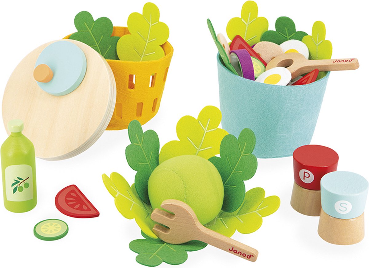 – Educatief Houtenspeelgoed – Snijgroente set met mes en schort - +18 maanden
