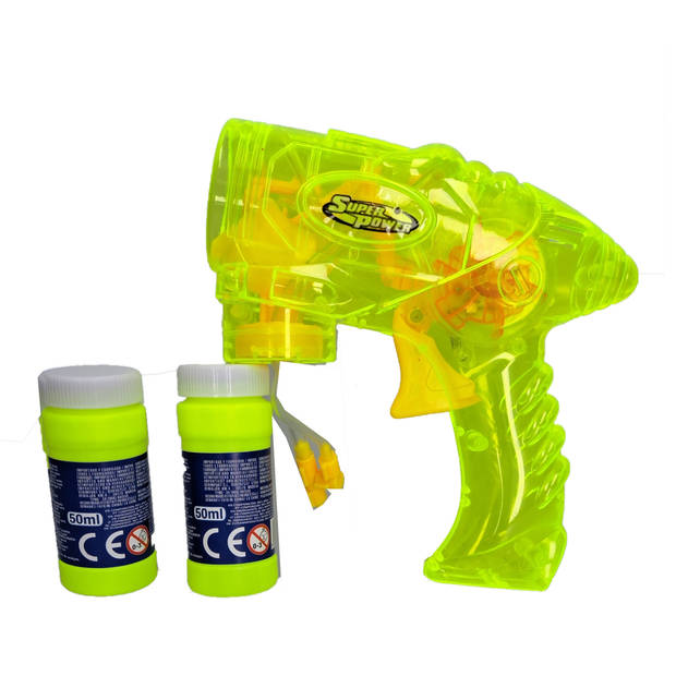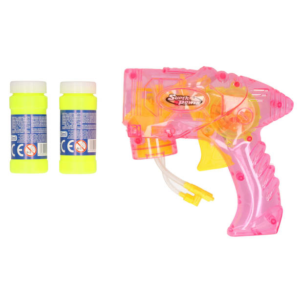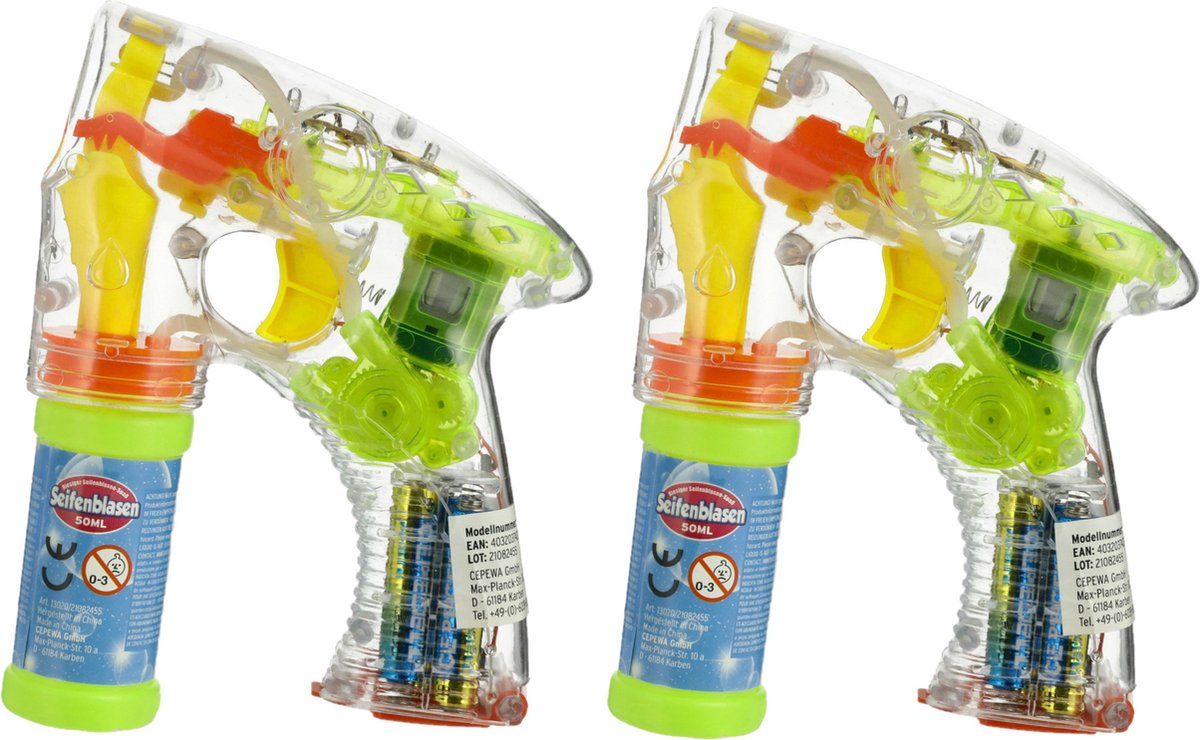 Spuit in een keer heel veel bellen tegelijk de lucht in met dit bellenblaas pistool! Het pistool geeft licht en geluiden. Geschikt voor kinderen vanaf 3 jaar.