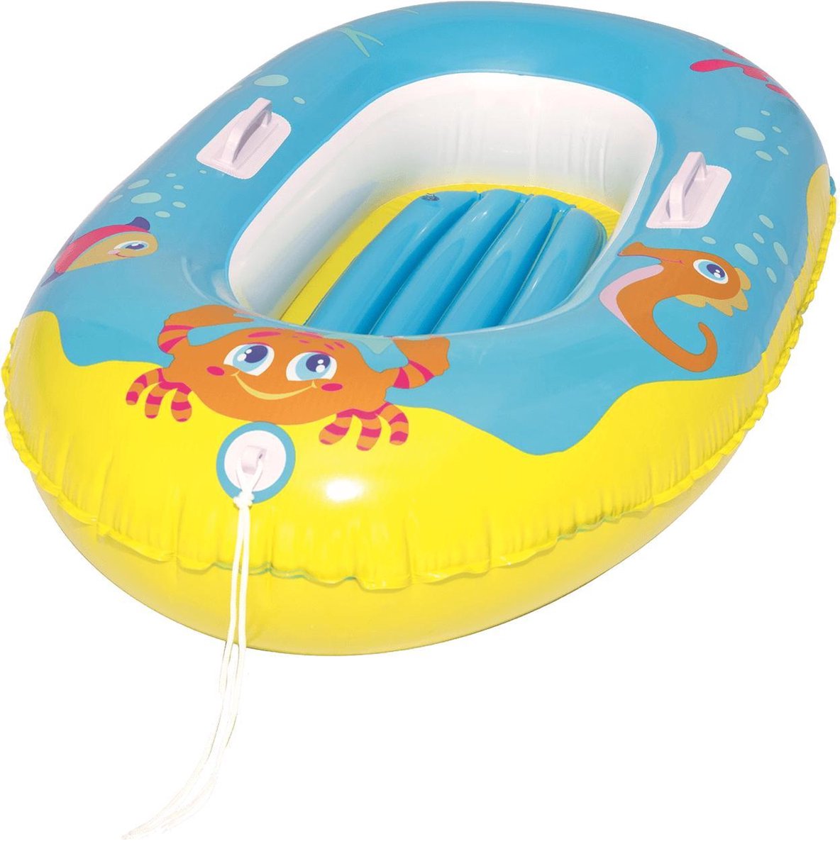 Opblaasbare 2-persoons boot met 3 luchtkamers. De opblaasbare boden in banen biedt comfort en stijfheid. Geïntegreerde hengelhouder en vaste sollen. Verder met een grijpkoord rondom, sleepring, riemklemmen, handgreep en reparatie patch. Incl. 1 paar riemen van 145cm.