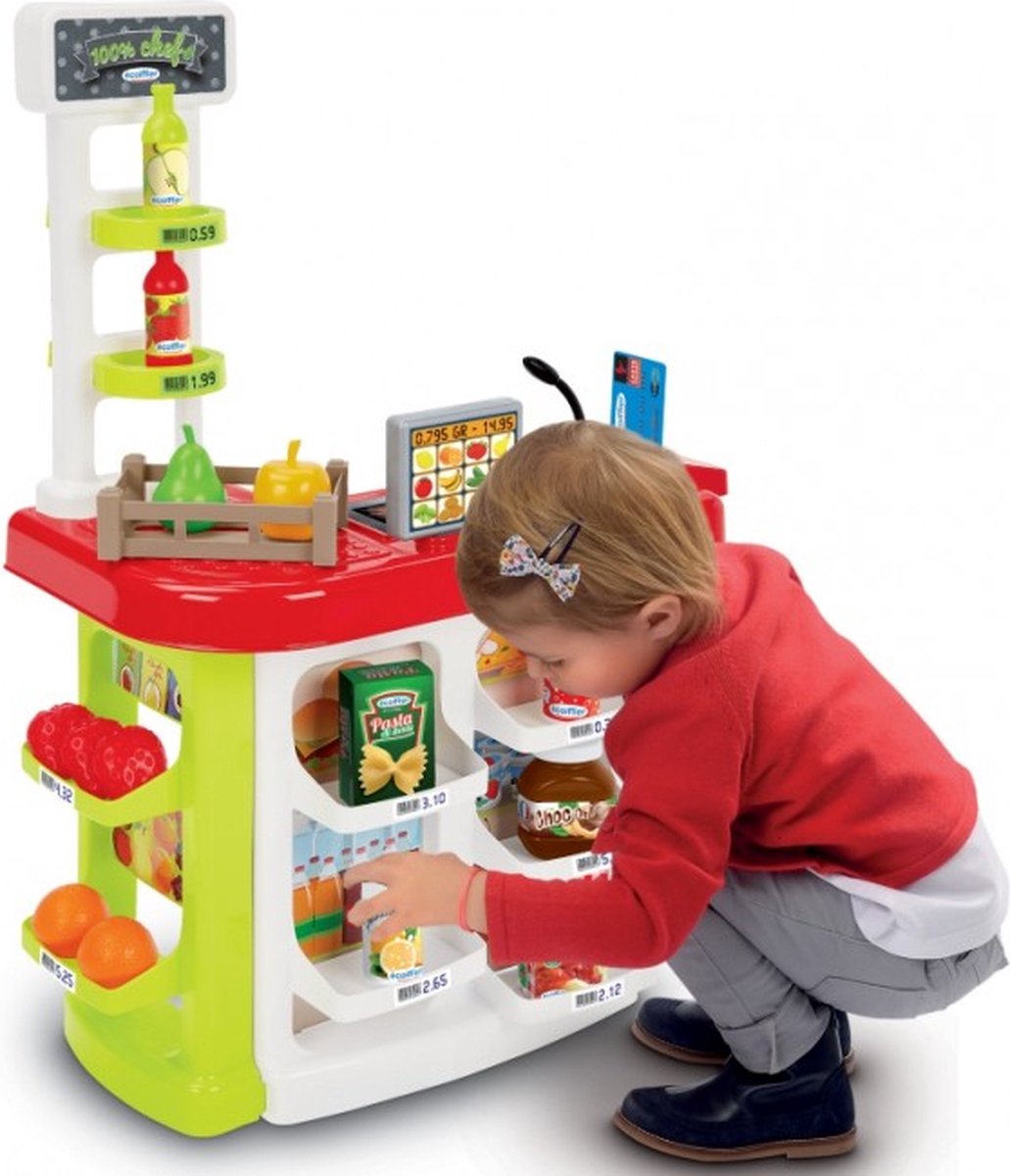 Houten boodschappen voor in de koelkast dus koel bewaren! Onder andere appelsap jam boter kaas pesto ketchup en citroensap. Alles wat je moeder ook in de koelkast heeft. Zeer geschikt om winkeltje te spelen of voor in je speelkeuken.