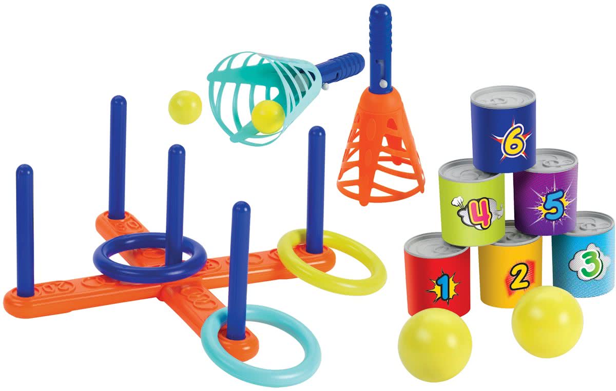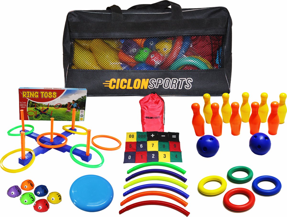 Sport en spel activiteiten kinderen - Basisschool - Kinderopvang - Lerend spelen - Ringwerpspel - Bowlingset - Rekenspel - Frisbee -