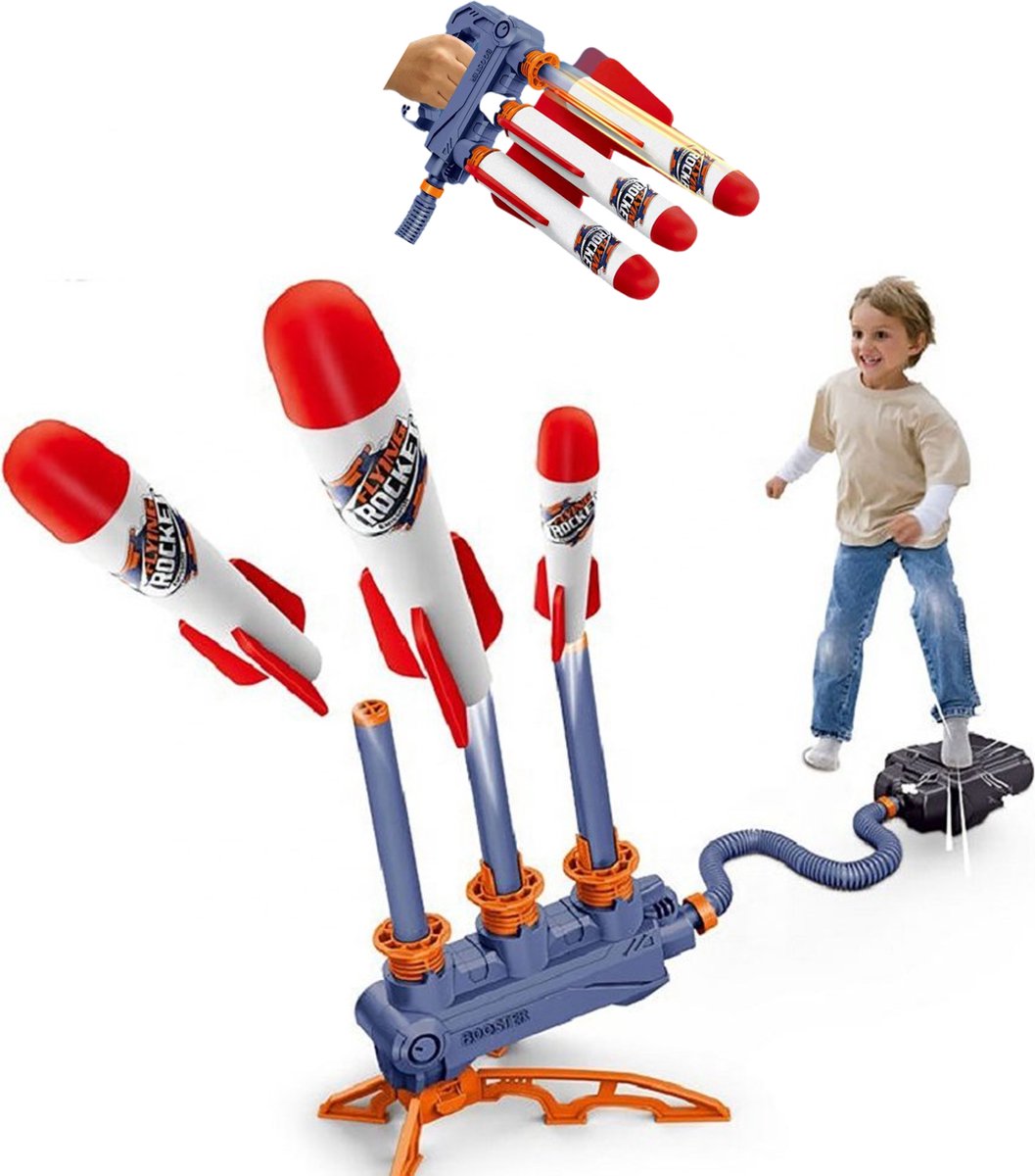 Speelgoed Raket - Inclusief 3 rakketten - Buitenspeelgoed met pomp-traptechnologie - Vlieg tot wel 10 meter de lucht in - Perfect voor kinderfeestjes en buitenspelen