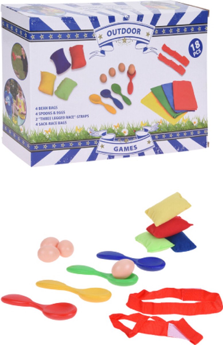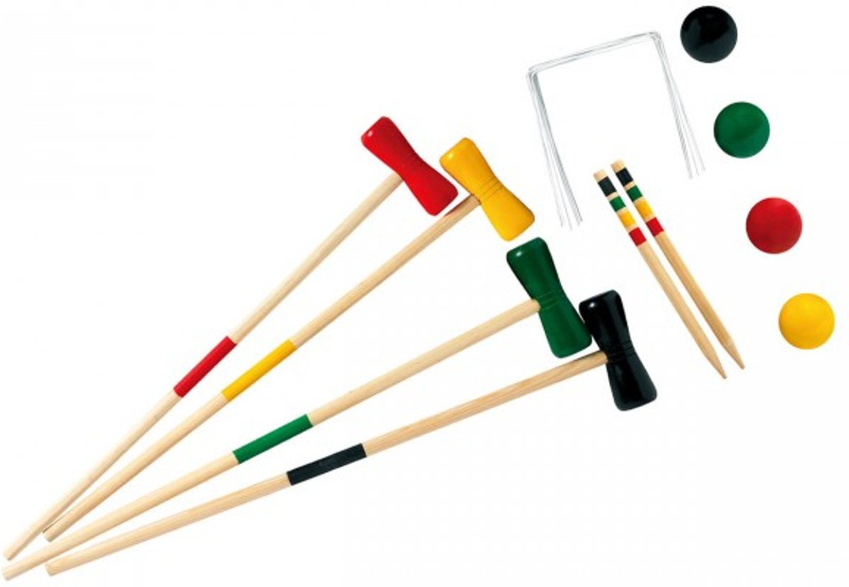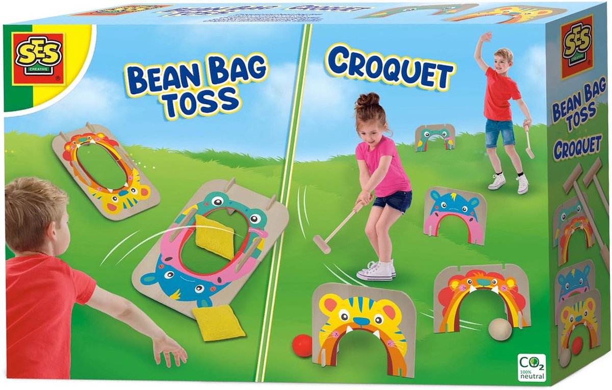 - Croquet and pittenzak gooien - 2-in-1 spellen - echt houten onderdelen met vrolijke illustraties - in handige bewaartas