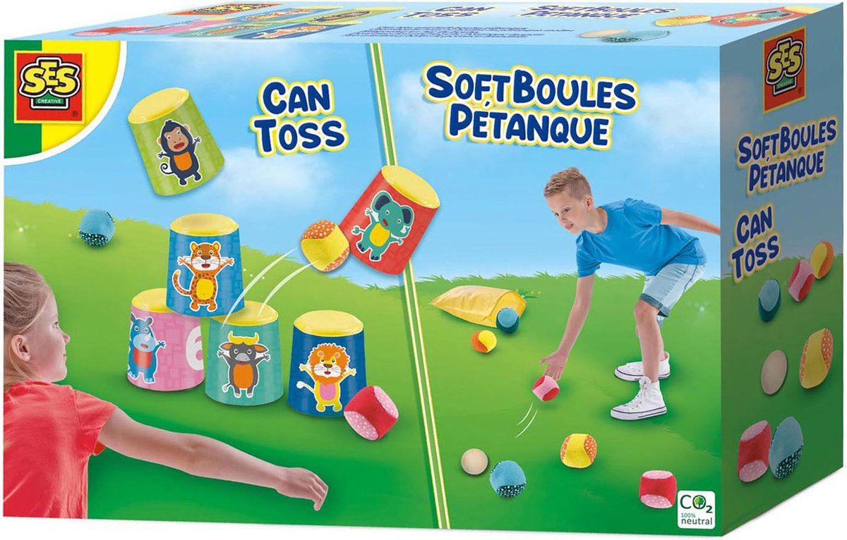 - Blikgooien en soft jeu de boules - 2-in-1 spellen - stevige kunststof bekers en zachte ballen - in handige bewaartas