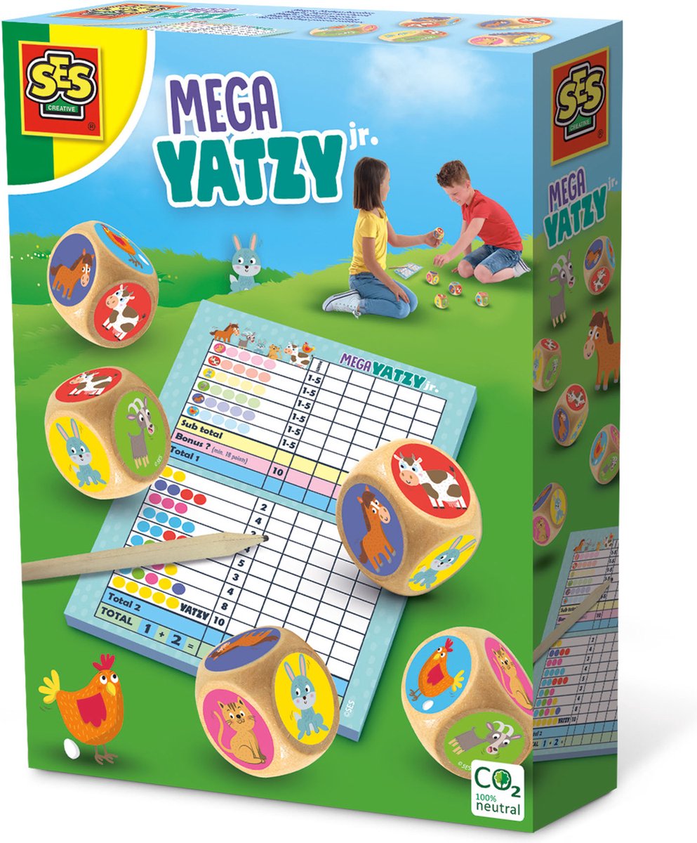 - Mega Yatzy junior - met plaatjes - simpele puntentelling - grote houten dobbelstenen