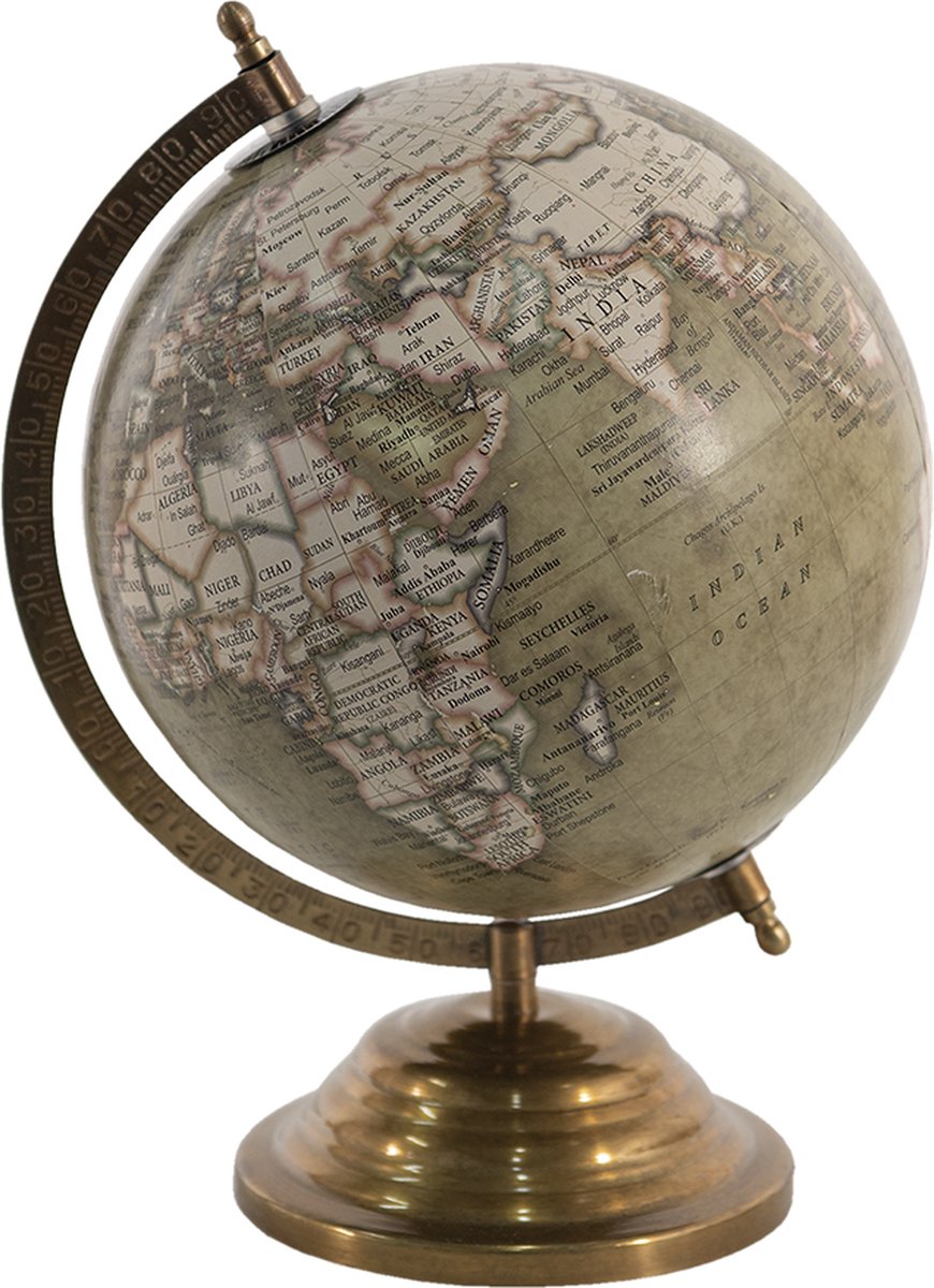 Wereldbol van het merk Clayre & Eef.De wereld als motief in een klassieke stijl met een moderne uitstraling.Deze decoratieve wereldbol is mooi voor in een studie ruimte of bibliotheek.
