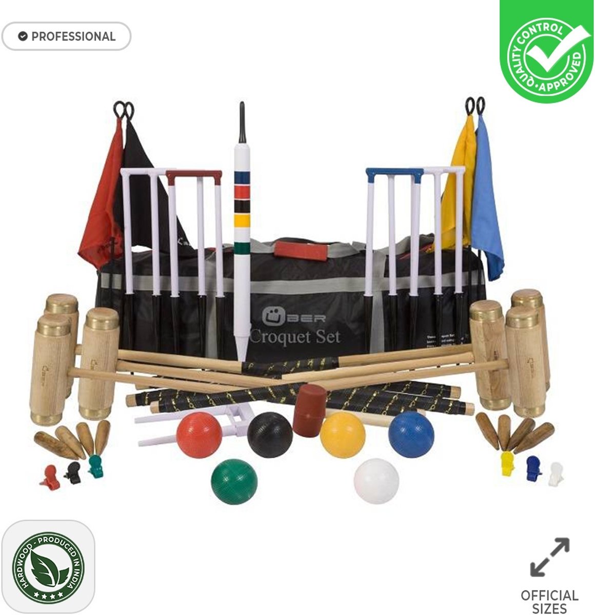 Professioneel Croquet Spel, 6 personen, slaghamers met koperen banden, 16mm dikke stalen poorten, kunststof ballen
