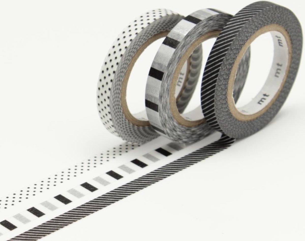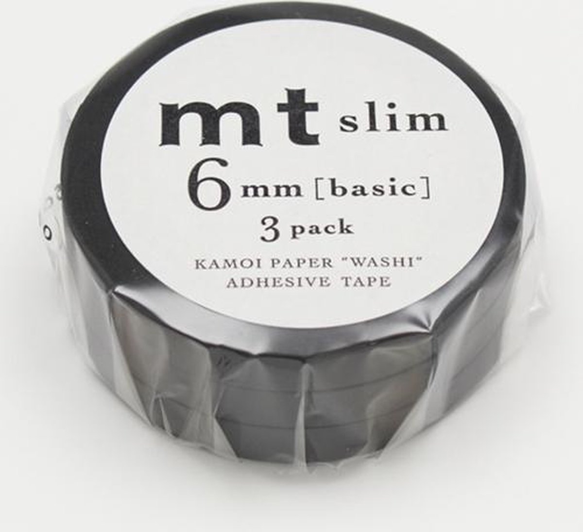 MT masking tape slim set matte black 3 rollen 3 mm x 7 meter - Washi Tape Zwart - Smal zwart plakband
