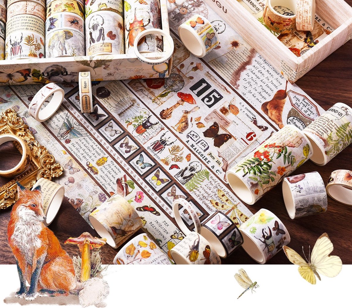 20 Rollen Washitape in een doosje verschillende breedtes Bloemen Planten Dieren