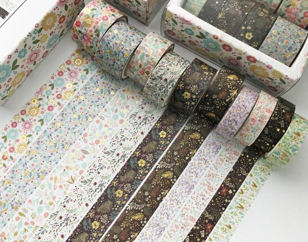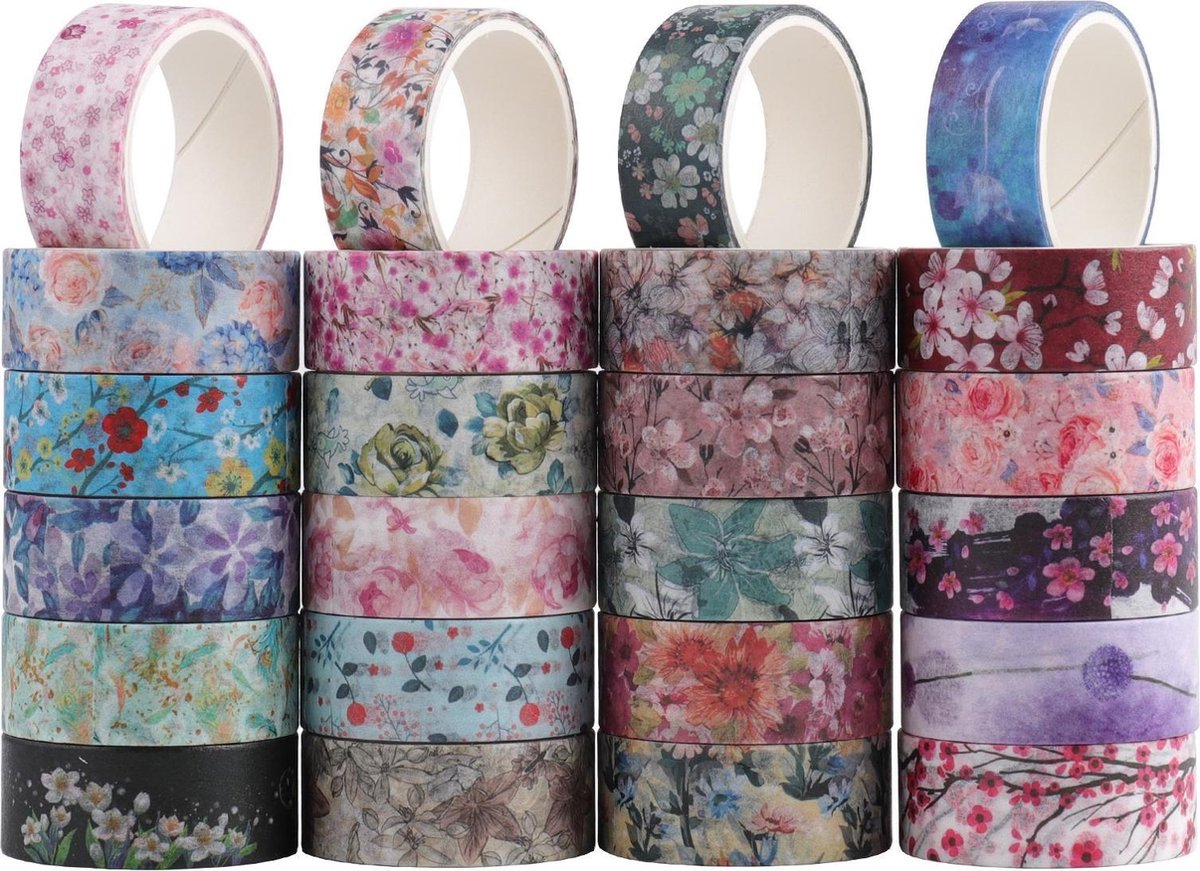 JHubers Goods - Washi-banden set met bloemenmotief voor scrapbooking en decoratie, 2 rollen