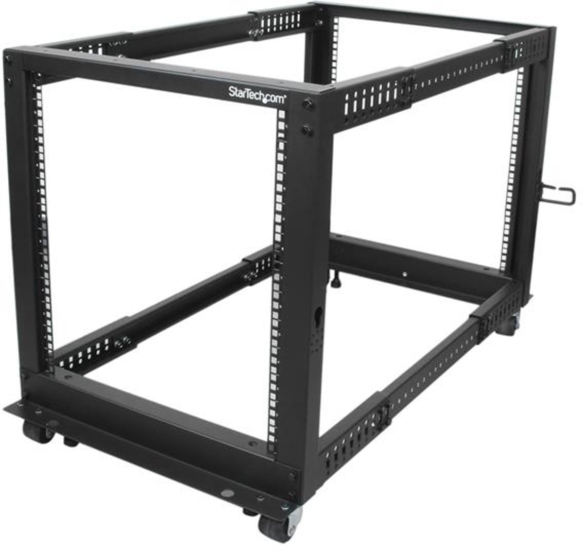 StarTech.com 12U open-frame serverrack met 4 stijlen met verstelbare diepte incl. zwenkwielen/stelpoten en kabelhaken