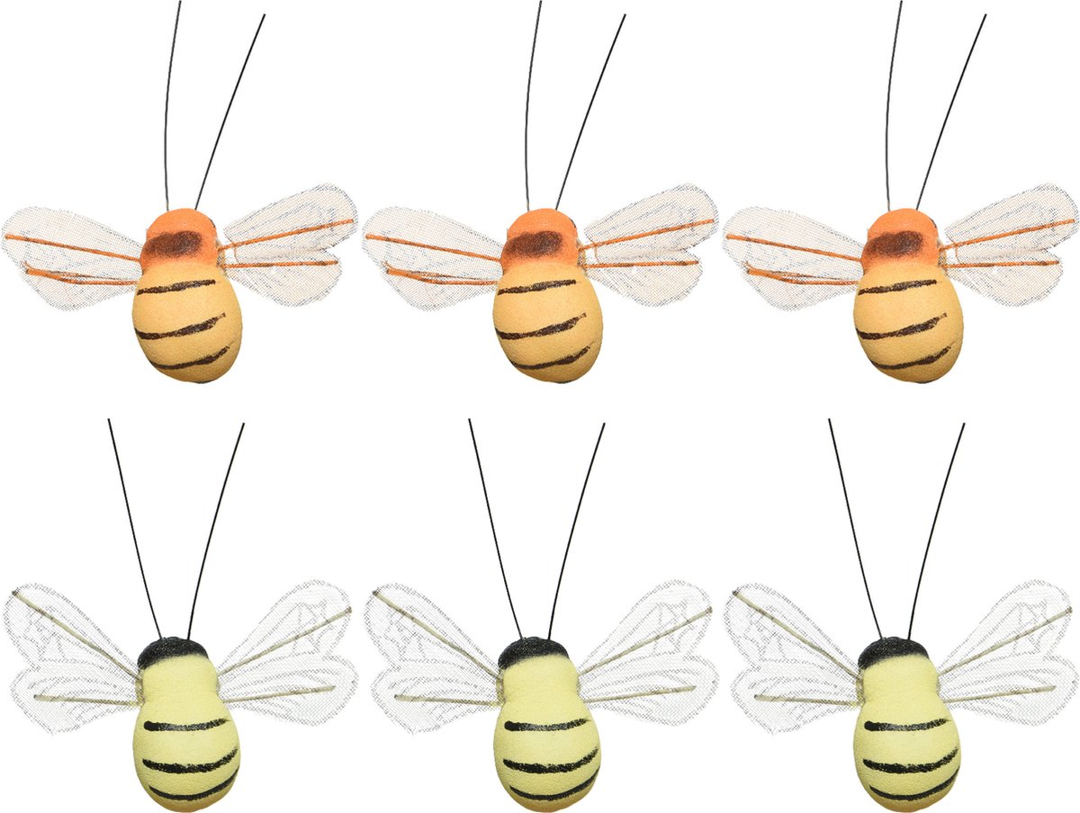 | Inhoud | Decoris Paasdecoratie bijen op clip - 6x stuks - 3 x 7 cm - foam - oranje |