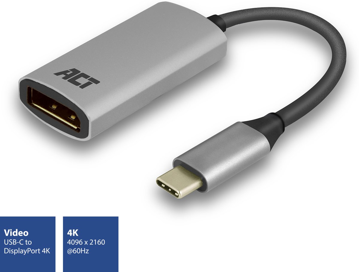 USB-C naar DisplayPort female adapter, 4K @ 60Hz, kabellengte 0,15m, aluminium behuizing AC7030
