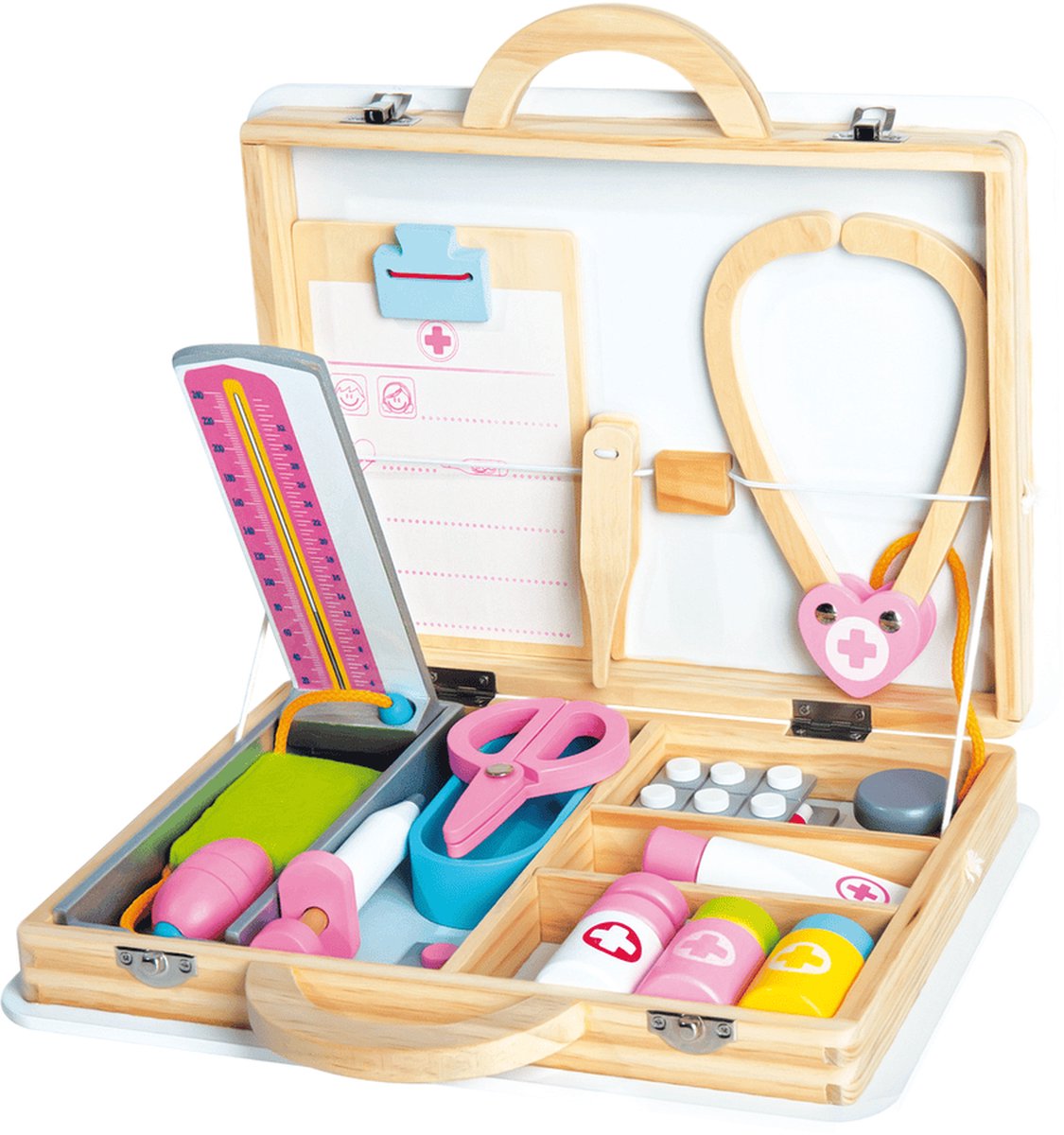 De patiënten stromen binnen bij jouw dokterspost en ze hebben allemaal verschillende klachten. Deze set bevat alle medische hulpmiddelen die jij nodigt hebt om de patiënten te genezen. Als je klaar bent, berg je alles weer netjes op in het koffertje zodat je andere patiënt ook thuis kan bezoeken.