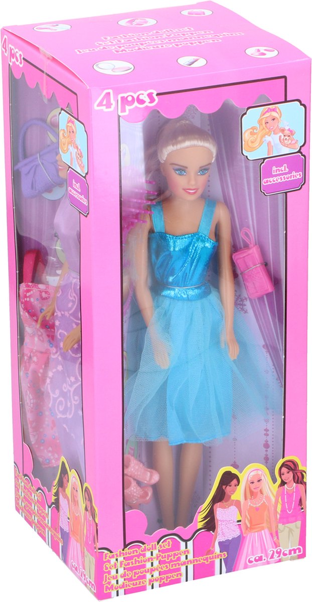 Speel naar hartelust met deze set met viertal modepoppen van Eddy Toys! De set met poppen bestaat uit maar liefst 4 identieke, witte poppen met blond haar. Alle poppen hebben hun eigen, unieke outfitje aan. Ook zitten er accessoires bij, waaronder handtasjes en borsteltjes.