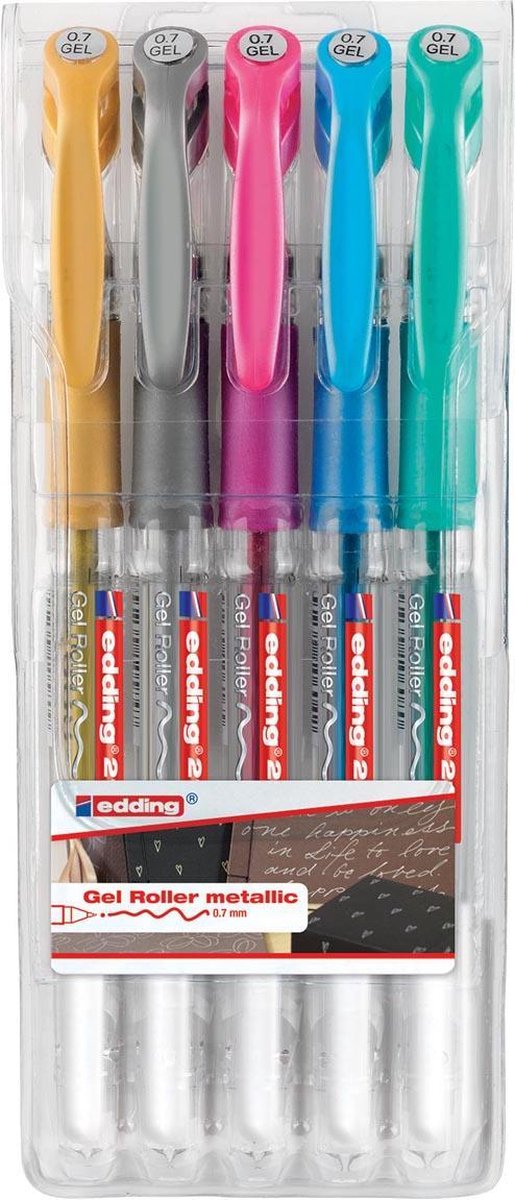 | Inhoud | Gelrollers Edding 2185 set van 5 - goud, zilver, blauw, groen, roze |