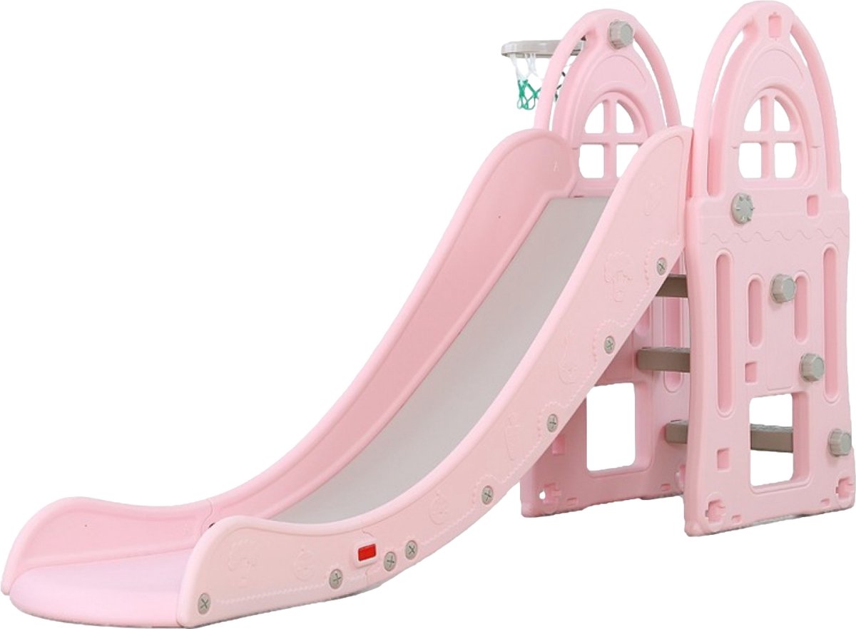 Glijbanen kind - Drie hoogte verstelbare schommels - Antislip treden - met demping - Schommel met leuningen - Geschikt voor binnen buiten - - schommel basketbalring in één - 140x118x102 cm - roze