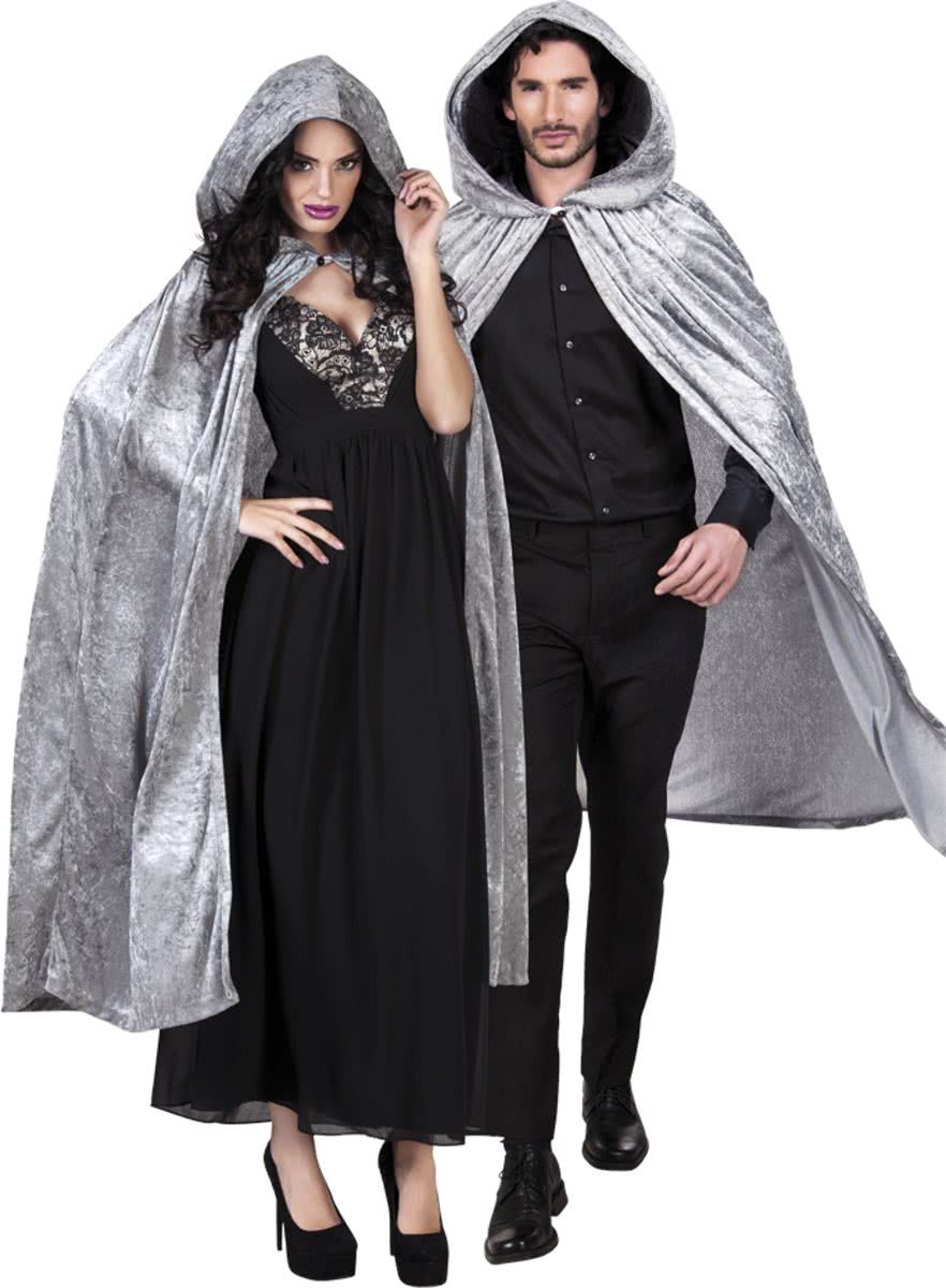 "Grijze cape met velours effect Halloween - Deze Halloween cape is grijs. De cape is zeer lang (ongeveer 120 cm lang zonder capuchon). Deze heeft een velours effect en sluit gemakkelijk aan de voorkant. Perfect voor een complete Halloween kostuum. "