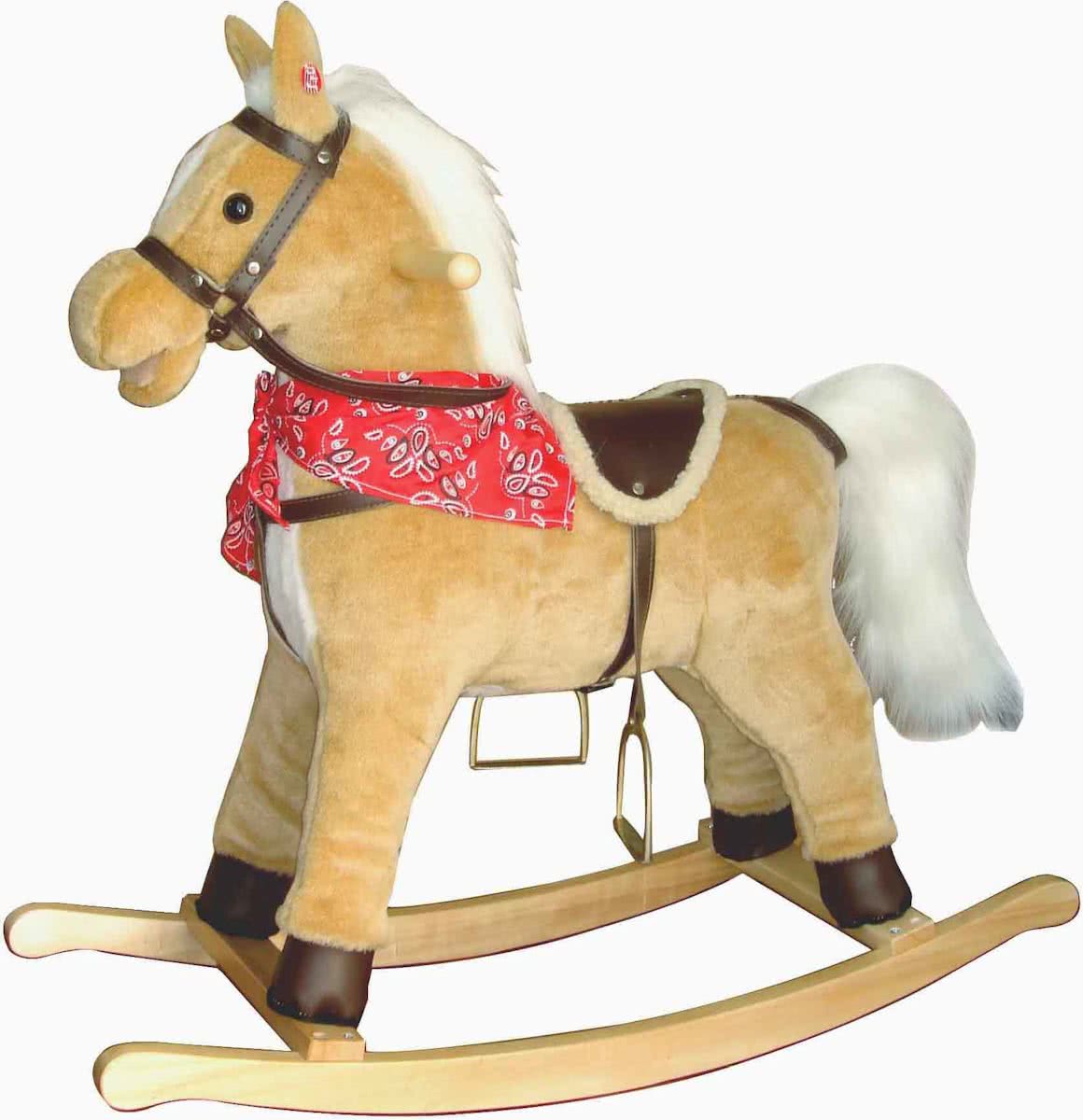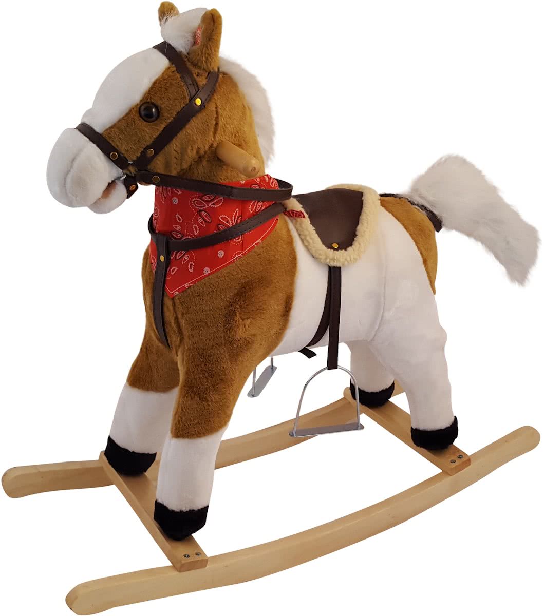 - Schommelpaard - Bruine Vacht - Lichtgevend met Melodie - Met Sjaal en Zadel - Knuffelbaar Speelgoed - Houten Frame - Kinderspeelgoed - Schommelspeelgoed - Paardenspeelgoed - Speelpaard
