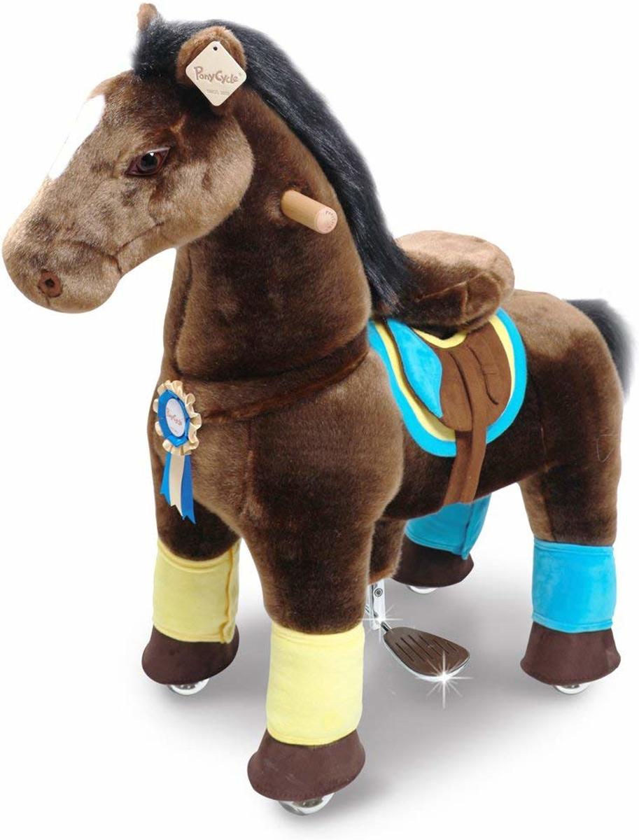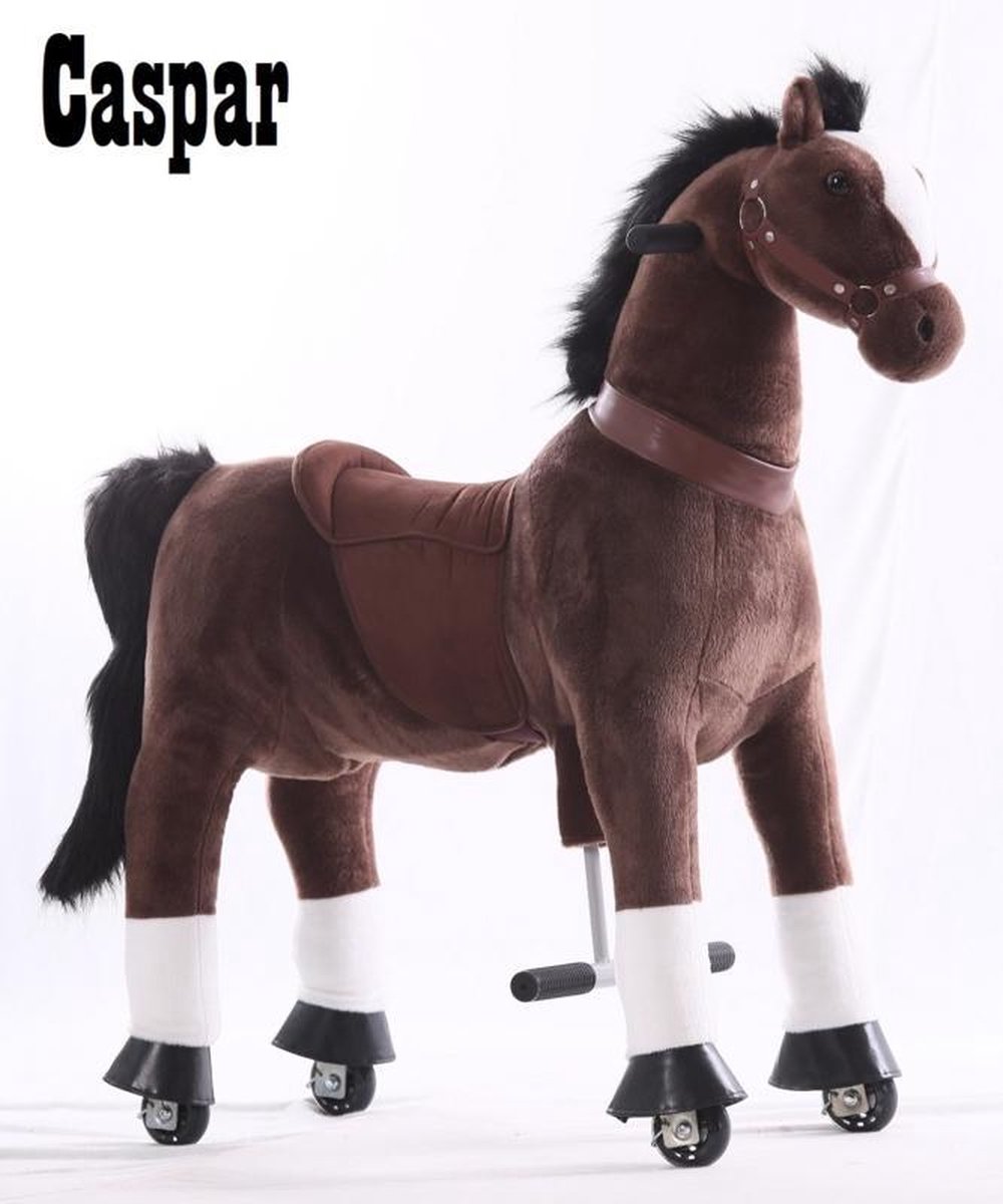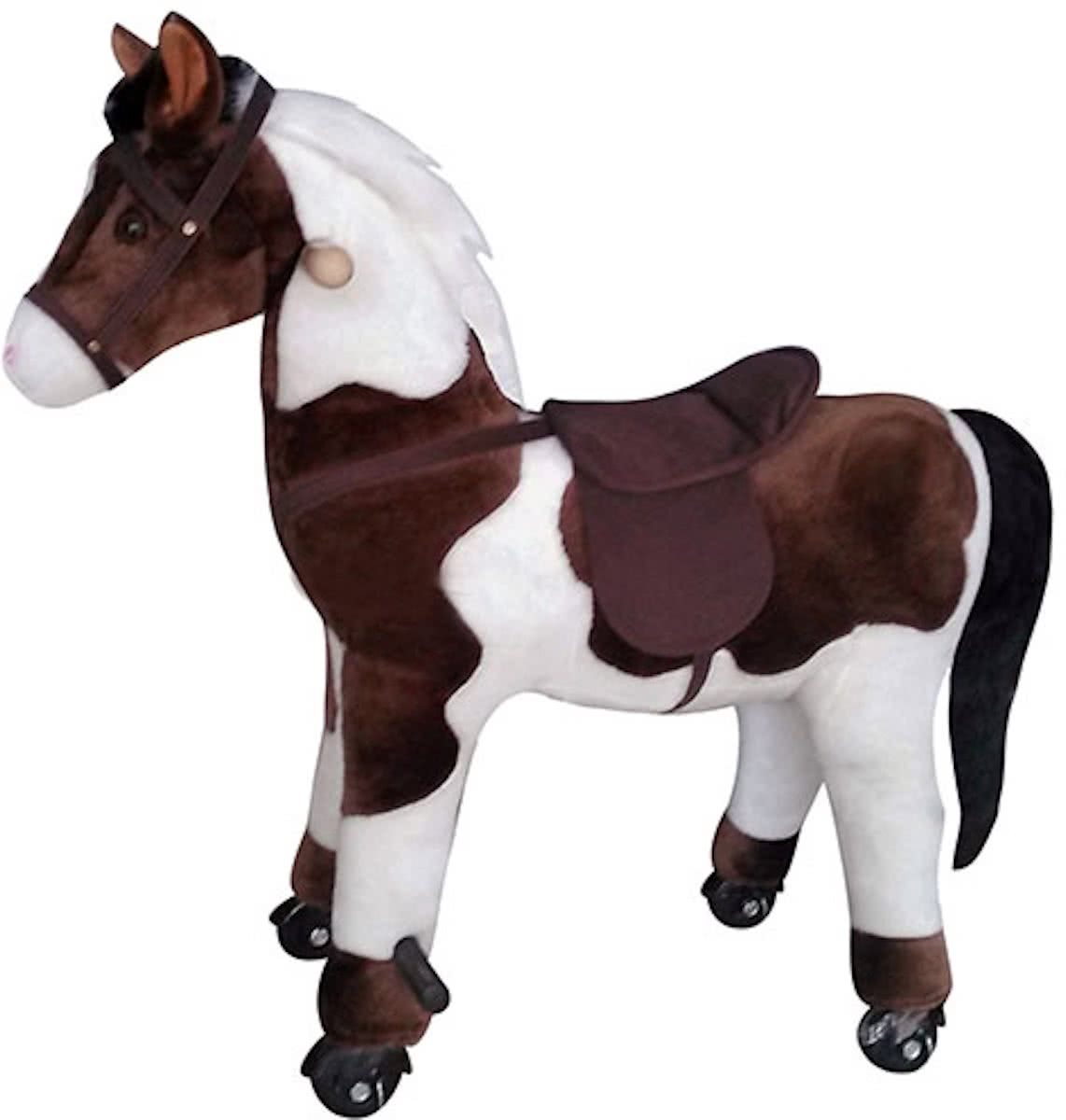 PonyRide Rijdend Speelgoed Paard - Hobbelpaard - 74x29x79 cm - 3-6 Jaar - Inclusief Inline Skate Wieltjes en leder zitje - Bruin