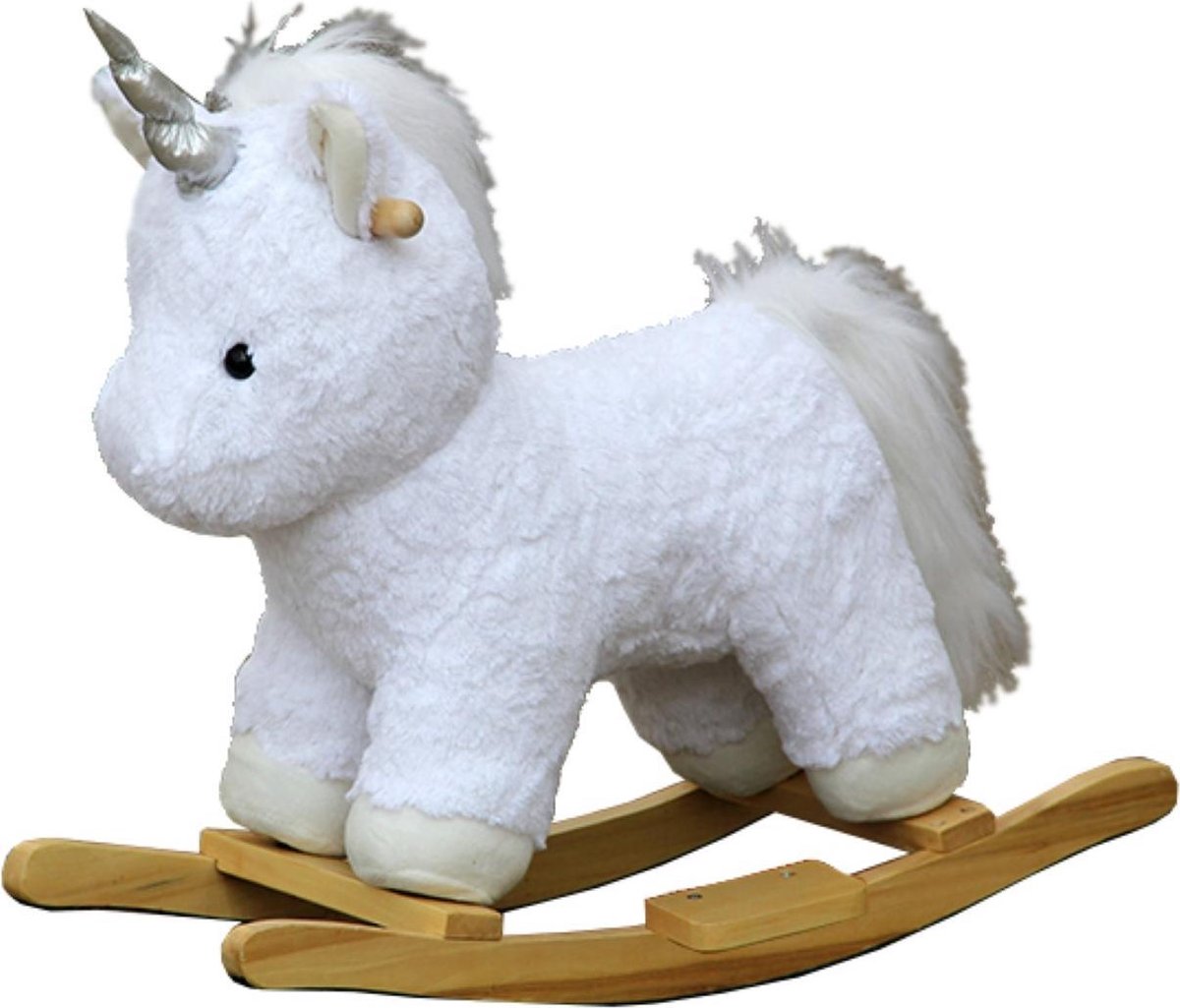 Maxx Kidz Hobbelpaard Eenhoorn - Houten Schommelpaard - 48 x 60 x 33 cm - Schommelstoel - Speelgoed voor Kinderen - Vanaf 3 Jaar - Wit