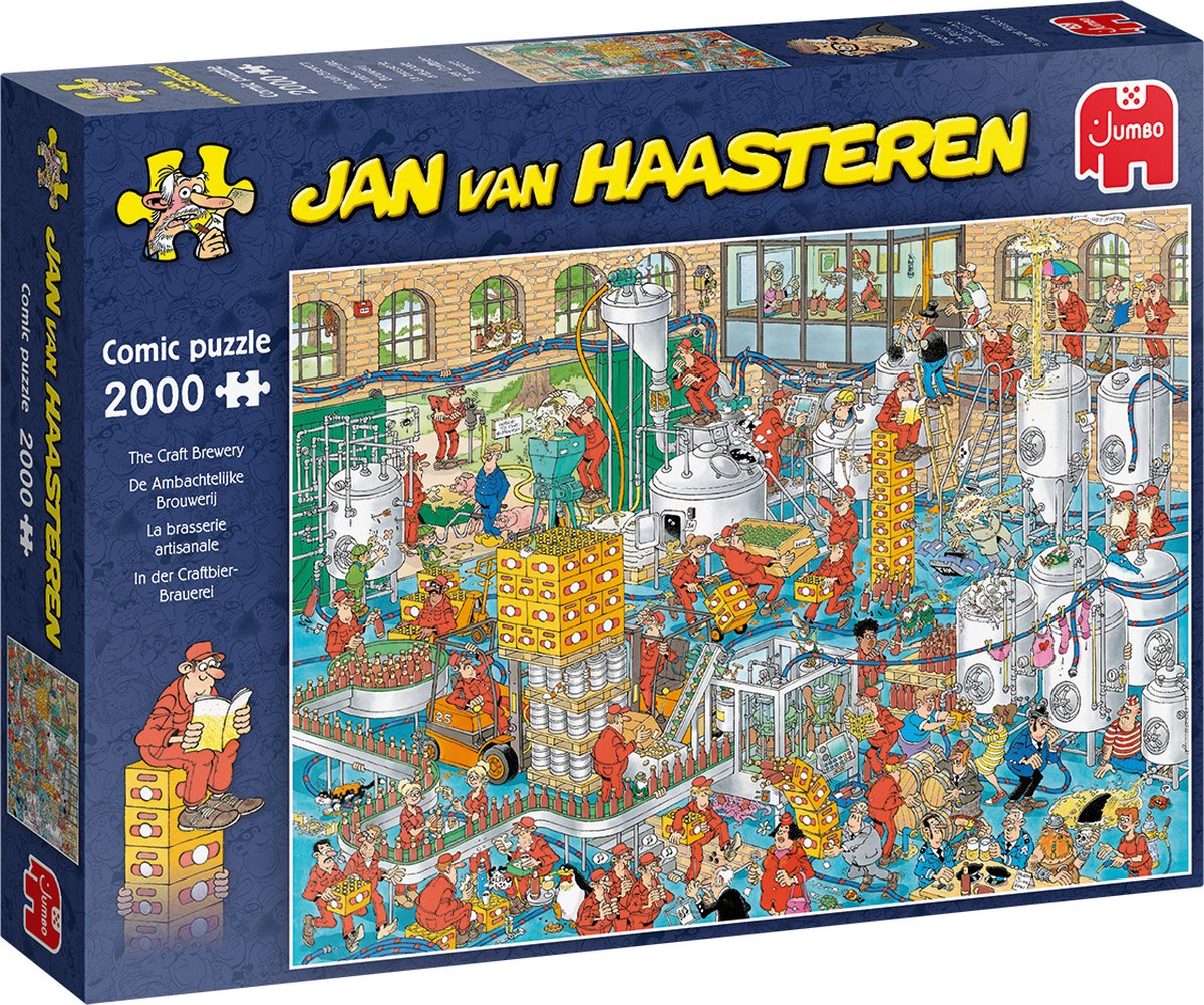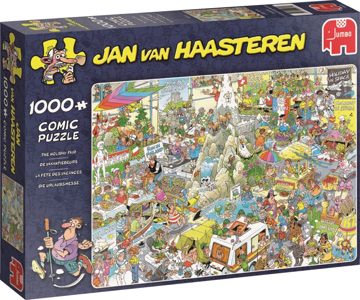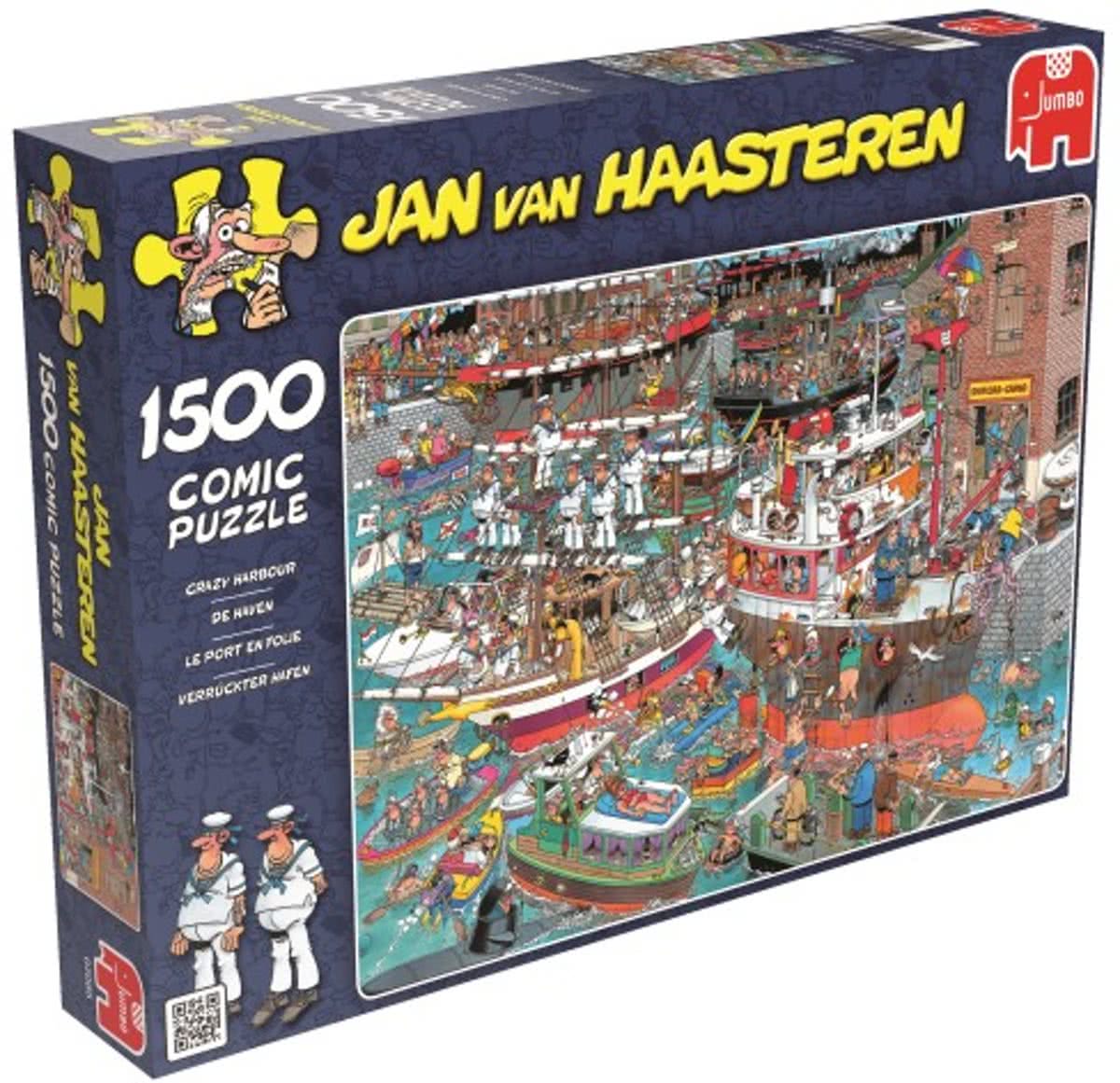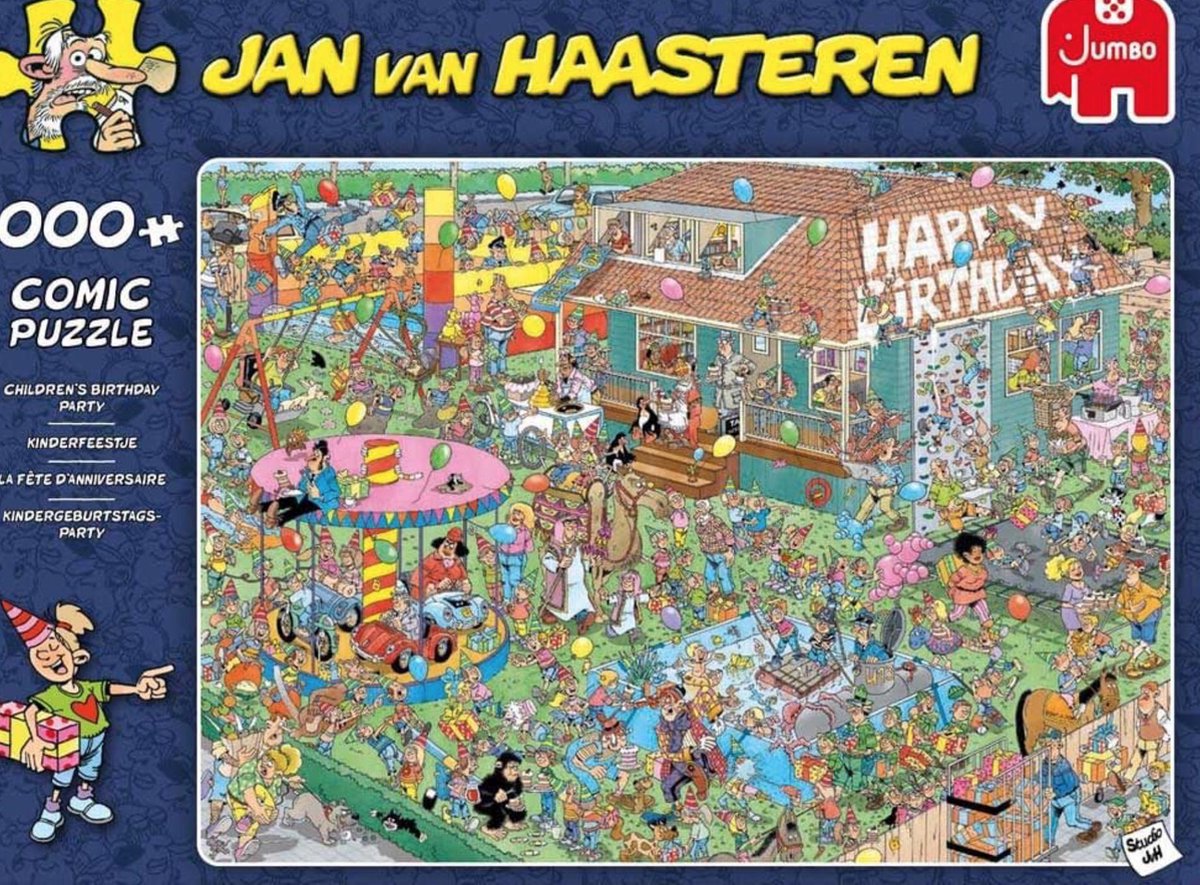 Jan van Haasteren puzzels zijn puzzels met veel kleur en details. Jan van Haasteren tekent al decennia lang humoristische platen die je steeds weer verrassen en laten lachen. De echte fans kennen de specifieke kenmerken van Jan van Haasteren en zoeken in elke puzzel direct naar de haaienvin, Sinterklaas, de handjes, het kunstgebit en Jan’s zelfportret. Jumbo heeft tientallen Jan van Haasteren puzzels in de collectie van 54 tot maar liefst 5.000 puzzelstukjes.