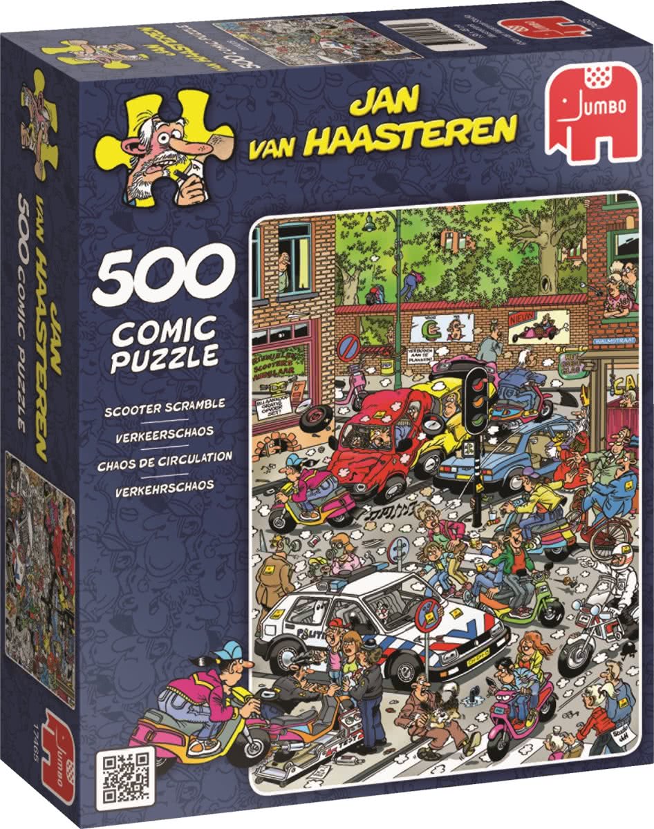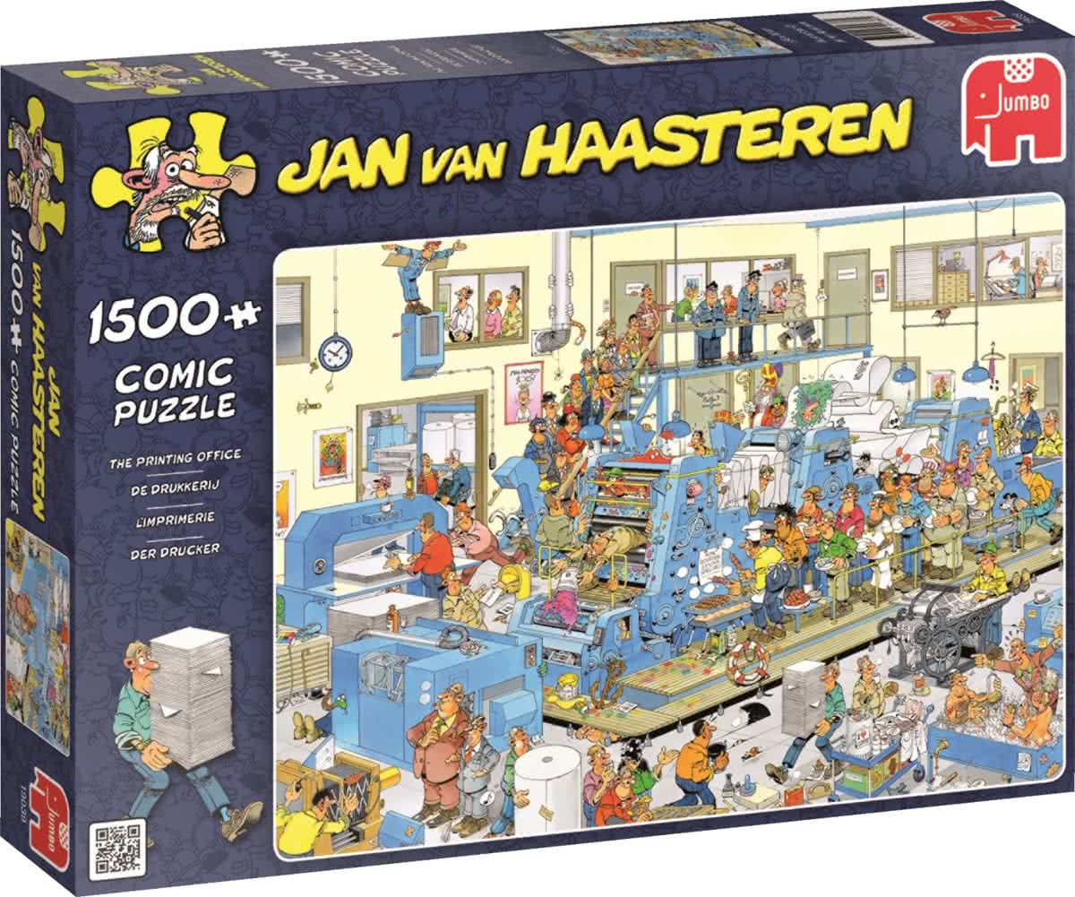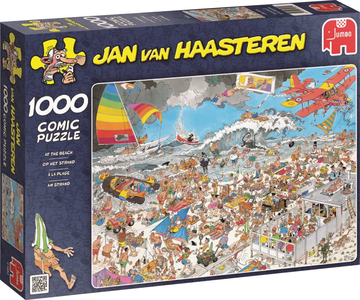 Jan van Haasteren puzzels zijn puzzels met veel kleur en details. Jan van Haasteren tekent al decennia lang humoristische platen die je steeds weer verrassen en laten lachen. De echte fans kennen de specifieke kenmerken van Jan van Haasteren en zoeken in elke puzzel direct naar de haaienvin, Sinterklaas, de handjes, het kunstgebit en Jan’s zelfportret. Jumbo heeft tientallen Jan van Haasteren puzzels in de collectie van 54 tot maar liefst 5.000 puzzelstukjes.