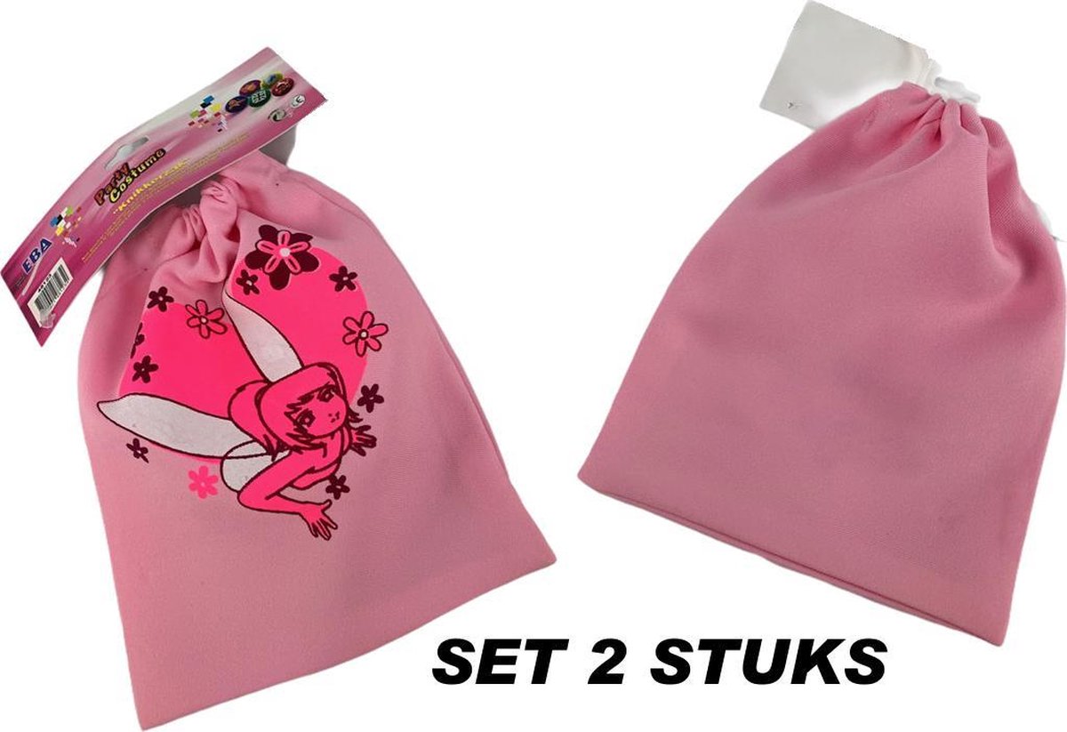 Prinses / Fee met sluitkoord – SET van 2 stuks – bewaarzakje / opbergzakje roze katoen