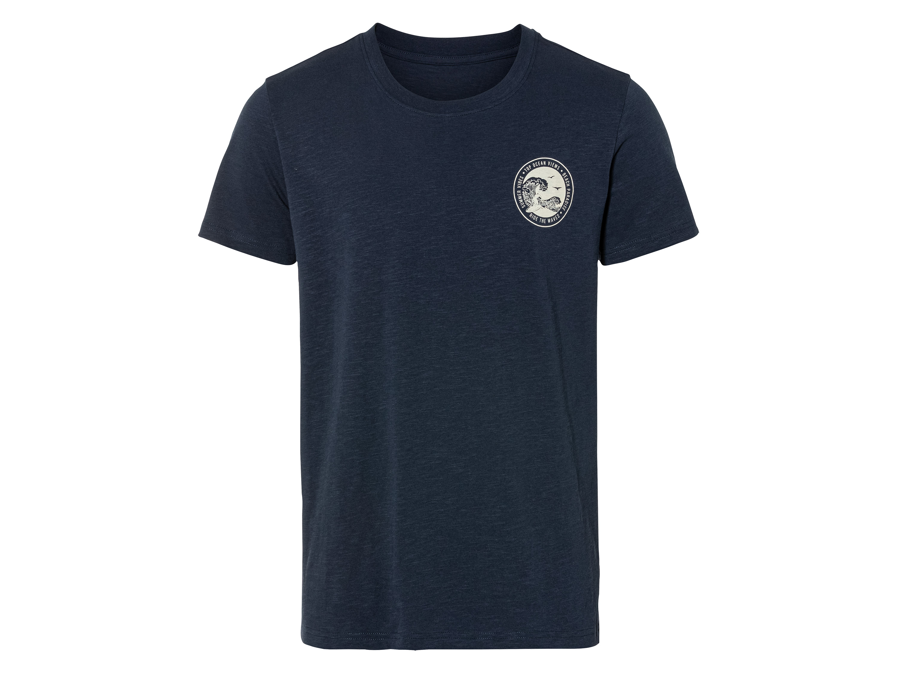 Wij ondersteunen de duurzame katoenteelt in Afrika Aangenaam draagcomfort door zuiver katoen Geproduceerd onder veilige en sociaal aanvaardbare arbeidsomstandigheden Met ronde hals Print op de borst en grote rugprint Nauwsluitend gesneden Productkenmerken table{width:100%;}td{padding-right: 30px; padding: 0.5rem; border-bottom: 0.0625rem solid #e3e4e5;} tr:nth-child(odd) {background-color: #F2F3F4;} Kleur: blauw, marine, wit Patroon: - Details: Rugprint Snit: Nauwsluitend gesneden Hals: Ronde hals Materiaal: 100 % katoen Onderhoudsinstructies Wassen op max. 40 °C Niet bleken Voorzichtig drogen in de wasdroger op max. 60 °C Strijken tot 150 °C (stand 2). Stoomstrijkijzer kan gebruikt worden Niet chemisch reinigen Maten S (44/46) - XXL (60/62)