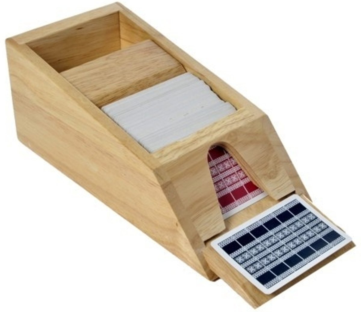 Domino spel in houten kist met schuifdeksel. Afmetingen 50 x 25 x 10mm. Stenen van urea kunststof.