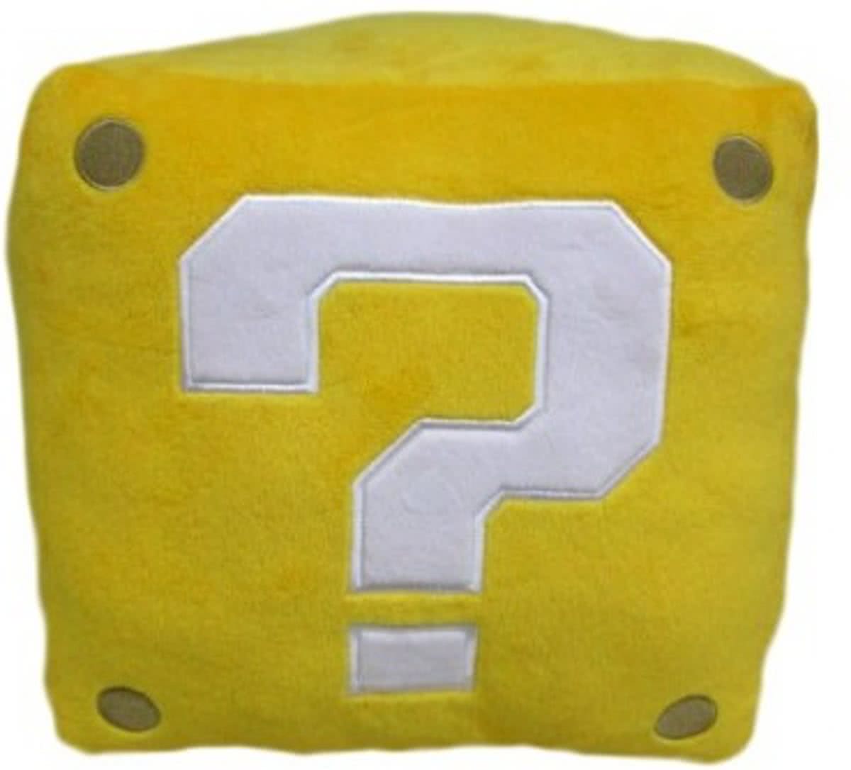 De pluche coin box gele kubus(bekend van mario spellen) onder licentie van Nintendo. De grootte van de knuffel is 25 centimeter. Fijn om naast je in bed te hebben of leuk om mee te spelen. Ook is de knuffel gemakkelijk mee te nemen. Leuk om voor je zelf te kopen of om als cadeau te geven aan een echte Zelda fan.