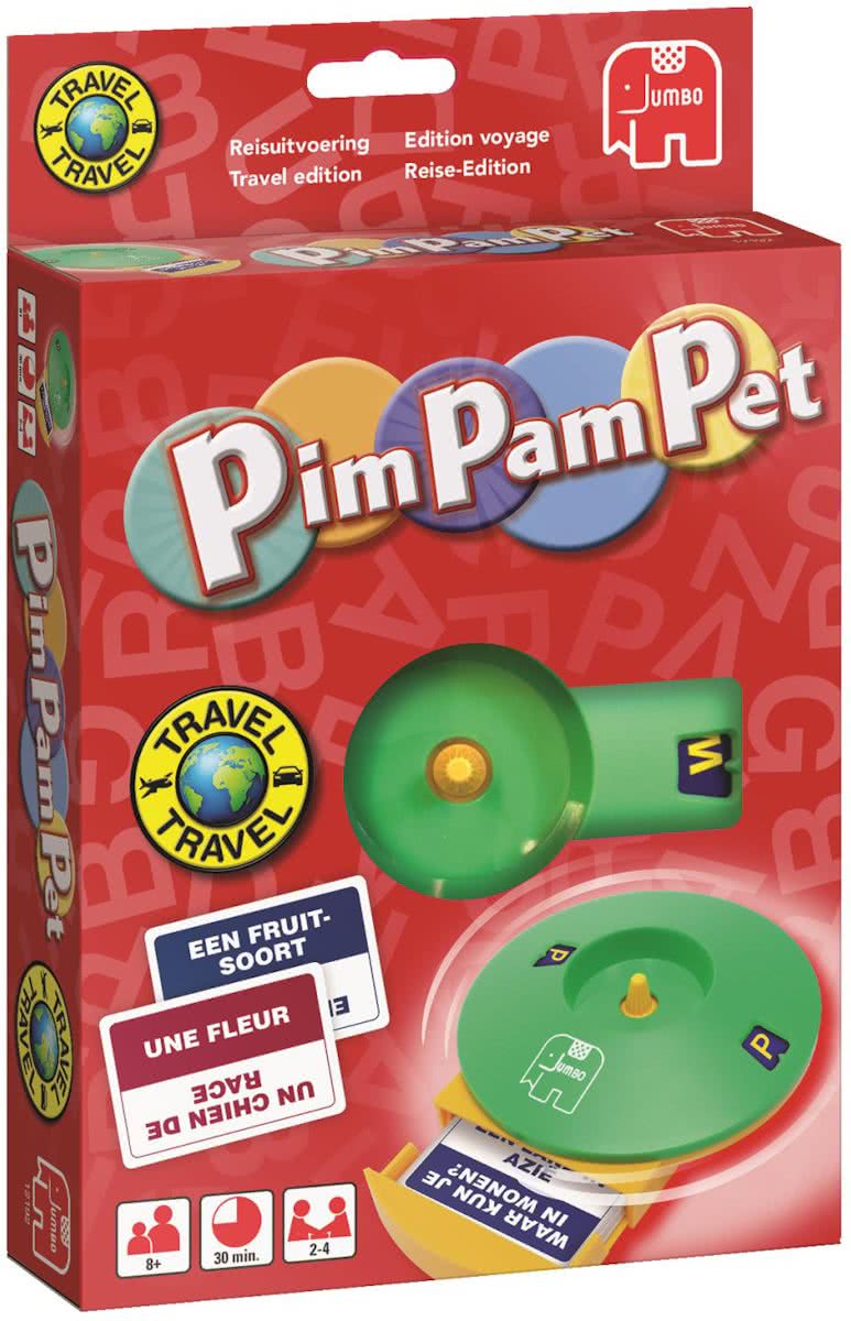 Pim Pam Pet Original is het meest gespeelde vraag- en antwoordspel voor de hele familie! ````Een stad met de letter..?```` De draaischijf bepaalt de beginletter. Welke speler reageert het snelst?