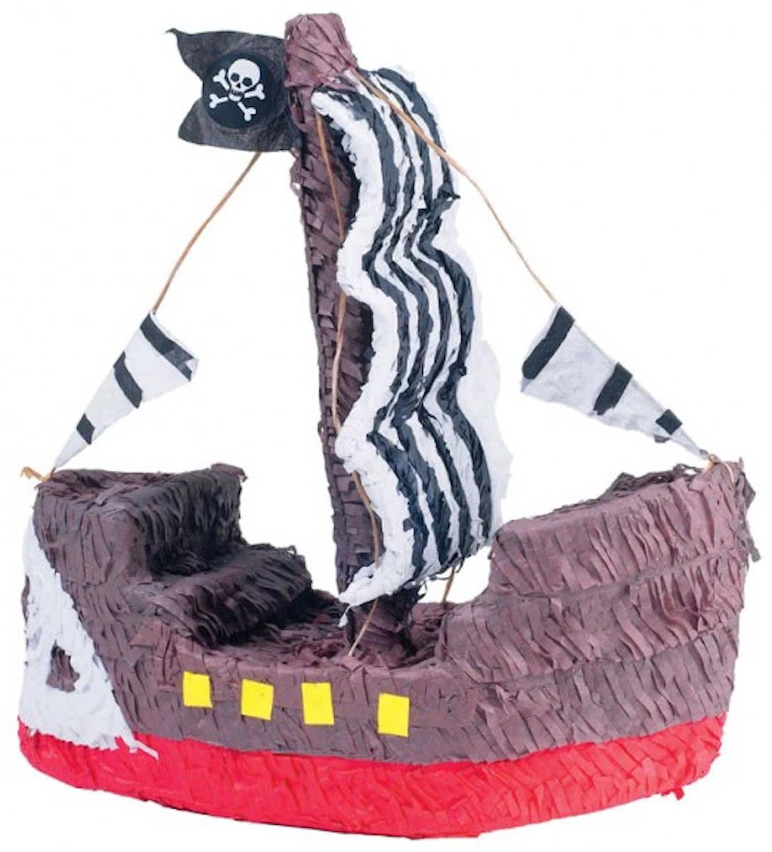 "Pinata piraten schip - Deze pinata is in de vorm van een piraten boot en is gemakkelijk te breken. Het heeft een kleine opening van5 cm, zodat deze gevuld kan worden met snoep, confetti, klein speelgoed en andere gadgets! Het meet ongeveer 40 cm breed en 42 cm hoog en 15 cm dik. De gasten op het feest kunnen geblinddoekt proberen de pinata kapot te slaan, zodat de inhoud eruit zal vallen! Deze pinata is ideaal voor een verjaardag!"