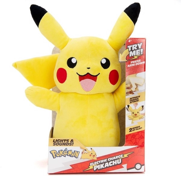 Met deze fantastische Pokemon Feature Plush Electric Charge Pikachu kun je de leukste avonturen naspelen! De knuffel heeft namelijk knopjes waar je op kunt drukken, om zijn wangen en staart op te laten lichten. Zo lijkt het net alsof de Pokémon elektrische aanvallen gebruikt in een battle!