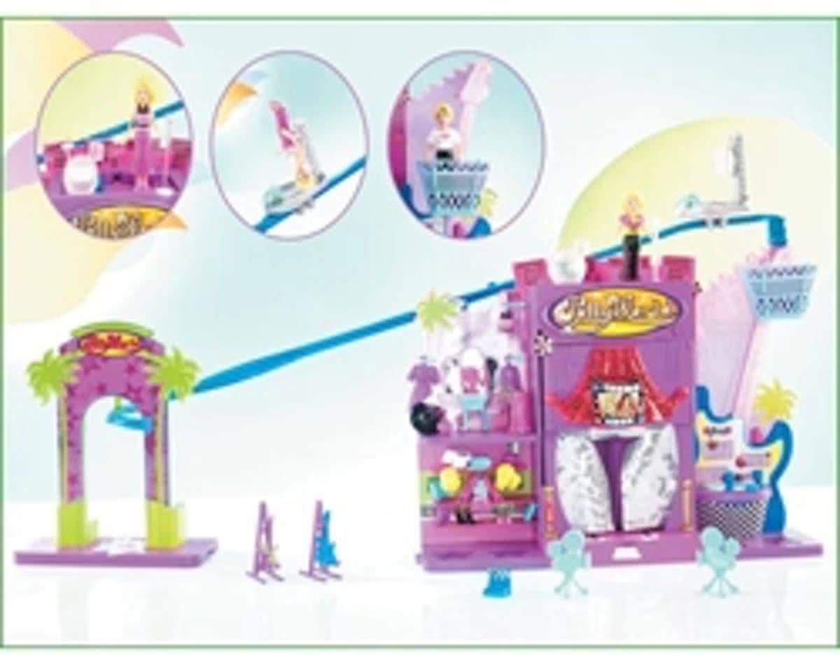 Het rock pretpark van Polly world, met lift, winkels en een verlicht rockpodium!