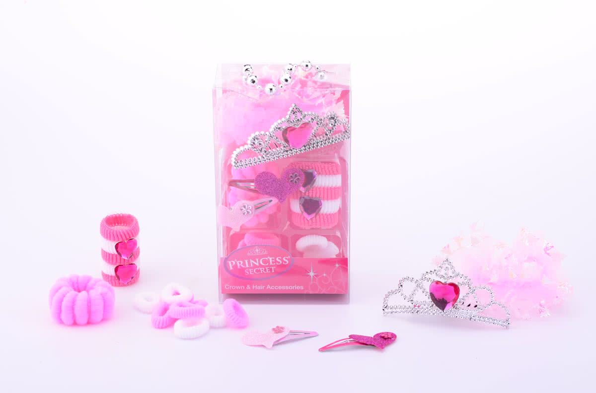 Met deze kroon en accessoires voel jij je een echte prinses. Maak jezelf mooi en ga opzoek naar jou prins op het witte paard. Let op: De kleuren van deze set zijn roze en donkerroze.