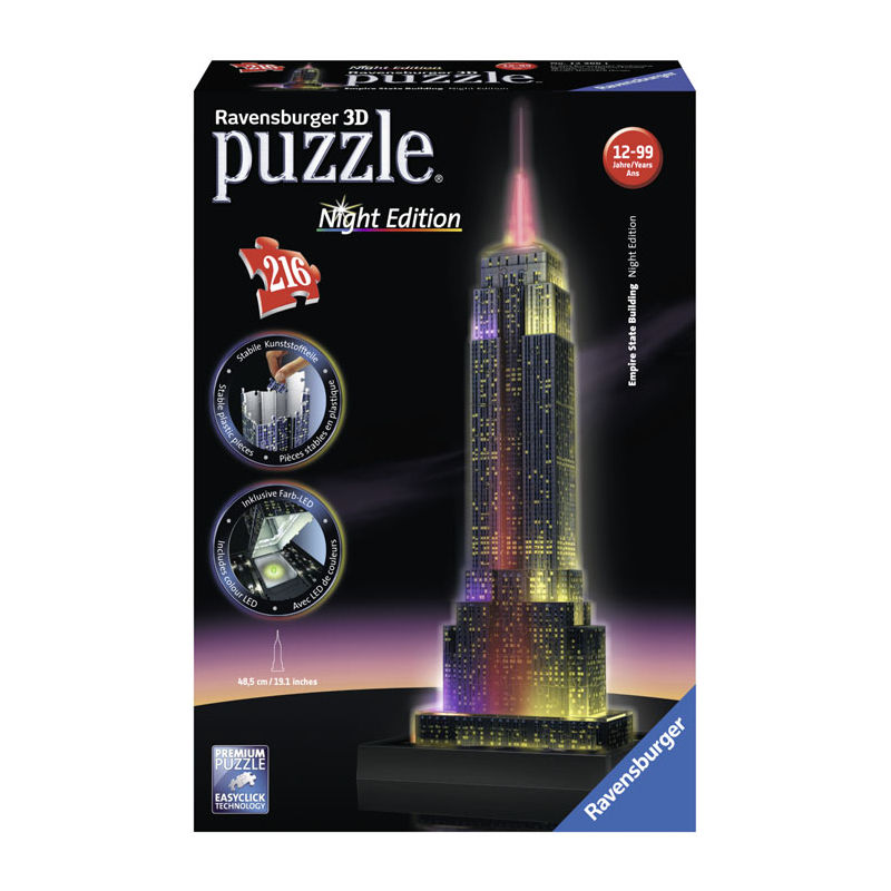 | Inhoud | Ravensburger 3D Puzzel Empire State Building bij Nacht 216 stukjes |
