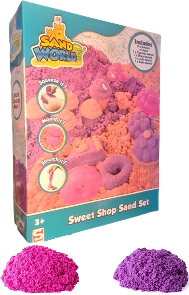 Sand World Magic Sand bestaat voor 98 procent uit zand, de andere 2 procent is bind middel. Hierdoor is Magic Sand het ideale binnen zand en kan het omschreven worden als perfect bouw en makkelijk vorm-baar zand. het blijft goed in vorm maar plakt niet aan je handen of de tafel. Met Magic Sand kan je van alles maken, denk aan een zandkasteel of een zandgebakje. Het spelen met Magic Sand is een magisch en ontspannend tijdverdrijf voor jong en oud.