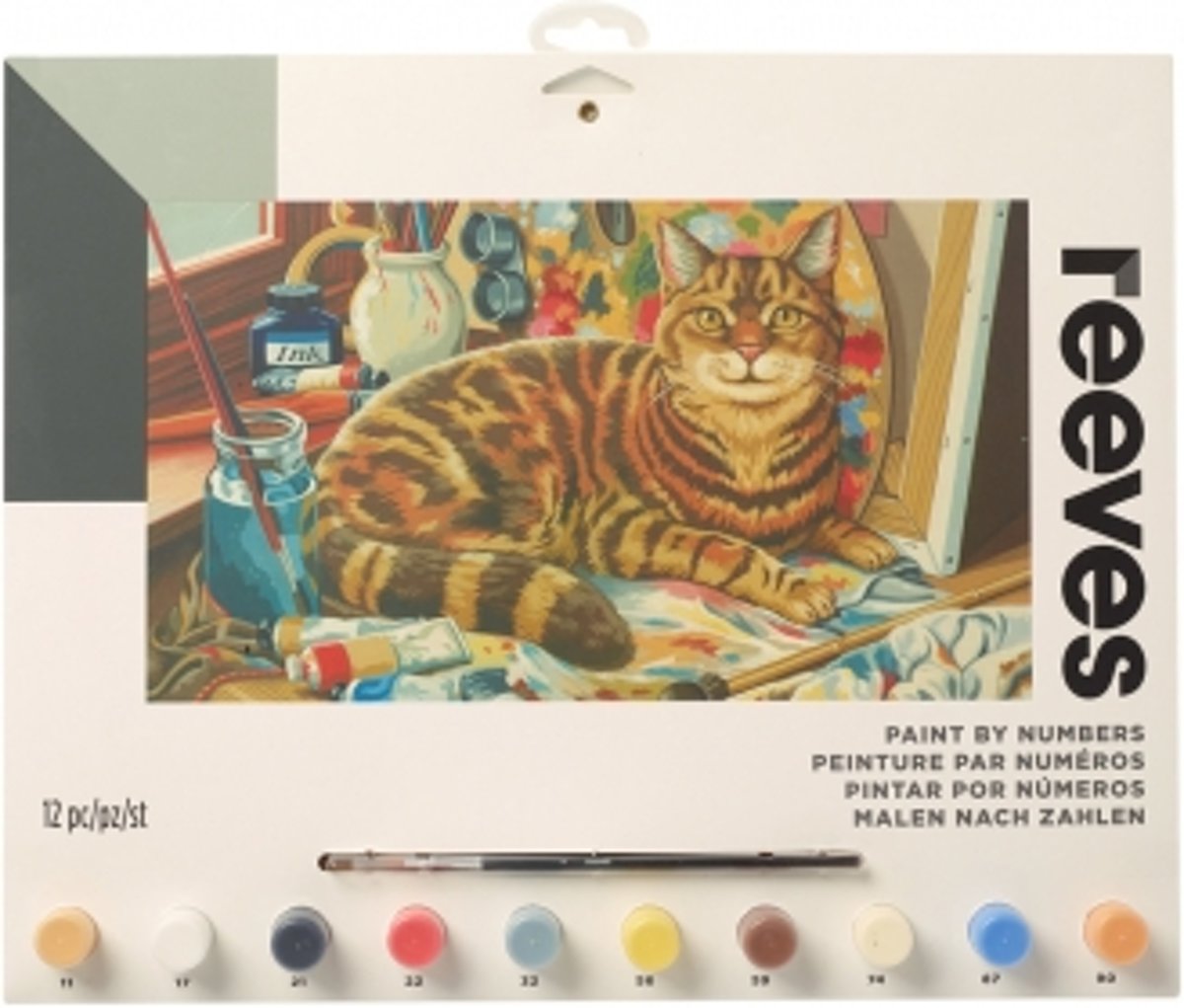 Reeves Schilderen op nummer. Inhoud: 1 schitterend schilderij met genummerd voorbeeld op board maat ca. 30x40 cm. De nummers geven aan waar welke kleur verf hoort. Het komt voor dat kleuren gemengd moeten worden. Verder 10 potjes acrylverf en 1 penseel. Acrylverf is waterverdunbaar. Na ca. 30 minuten drogen watervast.