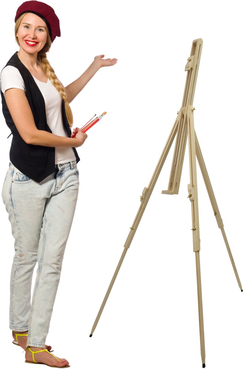 St. Tropez – Lichtgewicht & Draagbar   Beukenhout voor Canvas 80cm – Verstelbare Hoek, Antislip Rubberen Voeten