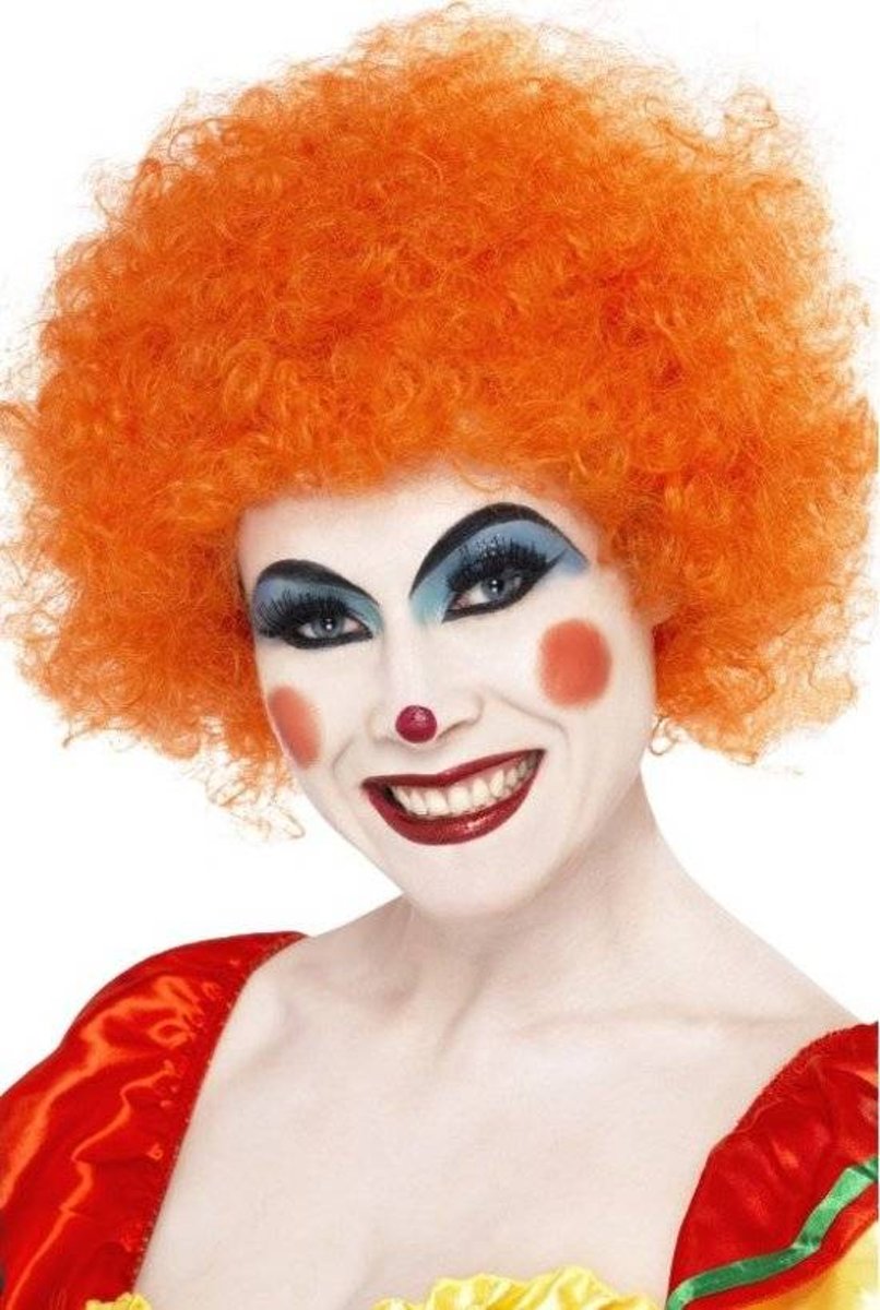 Clown verkleed set - gekleurde pruik - met bolhoedje oranje - Carnaval clowns verkleedkleding en accessoires - volwassenen