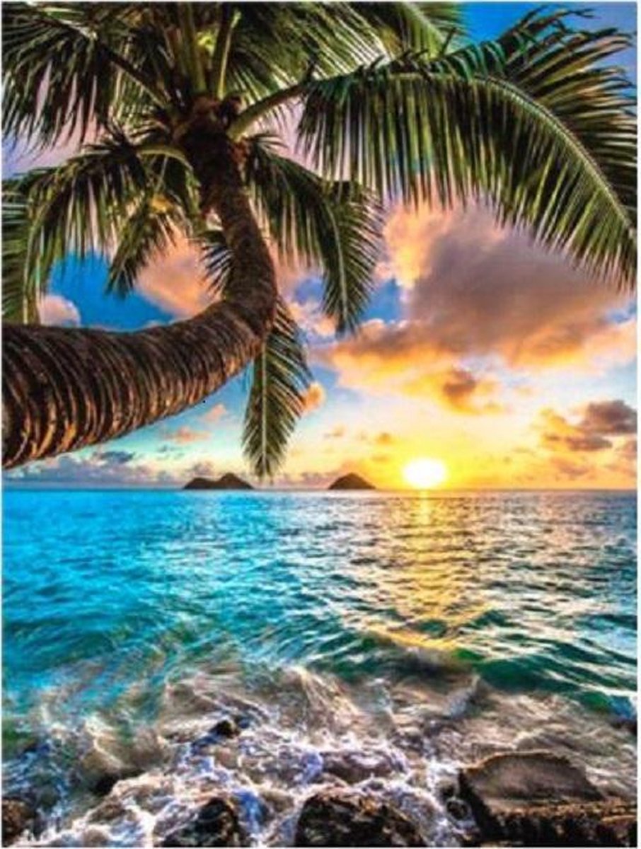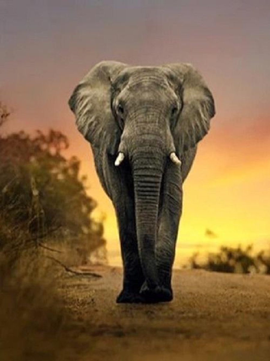 Diamont Painting volwassenen | Volledig pakket | 20 X 30 | Vierkante steentjes|Diamant Painting Sunset Elephant