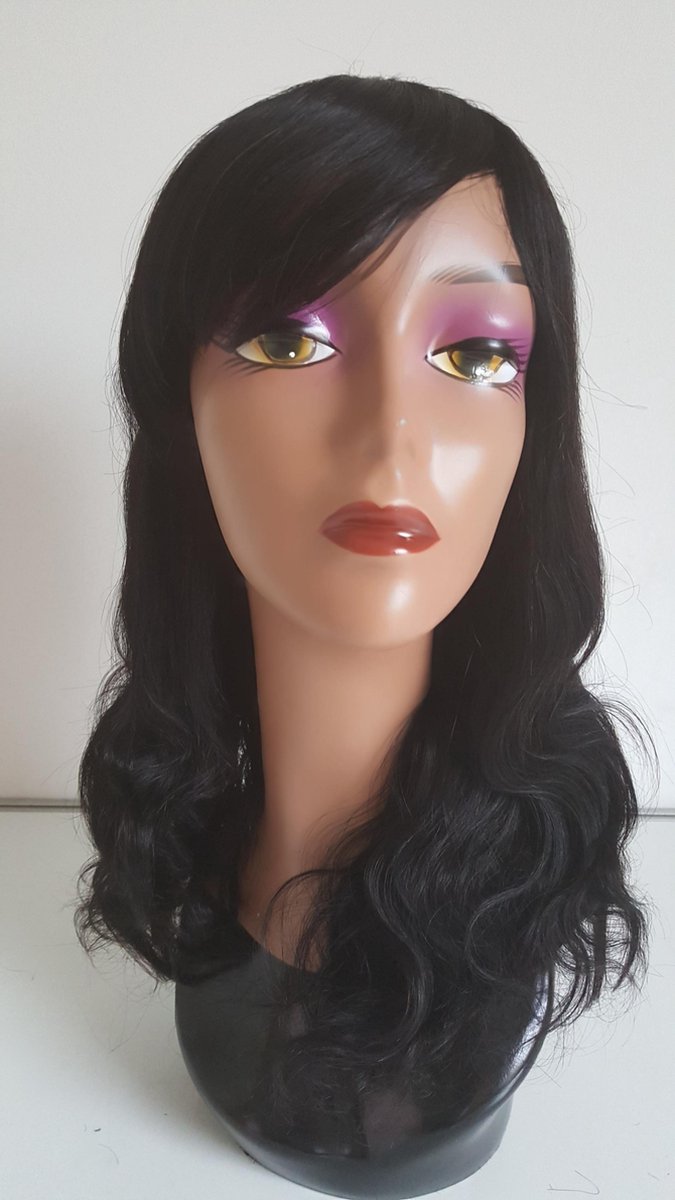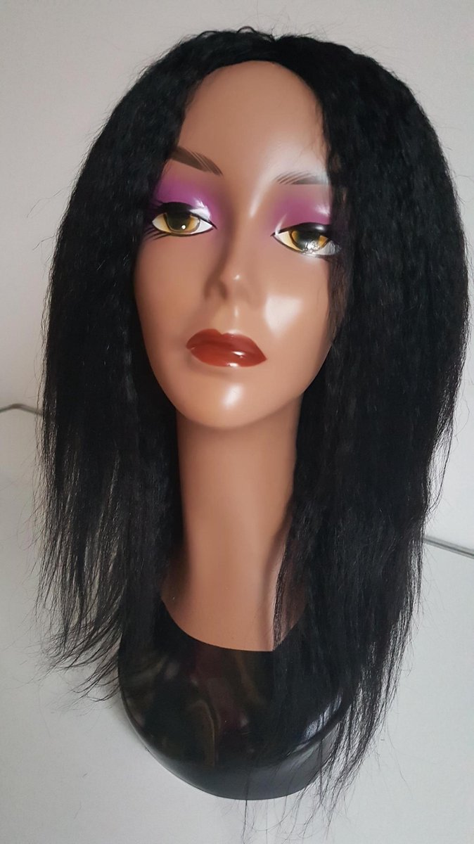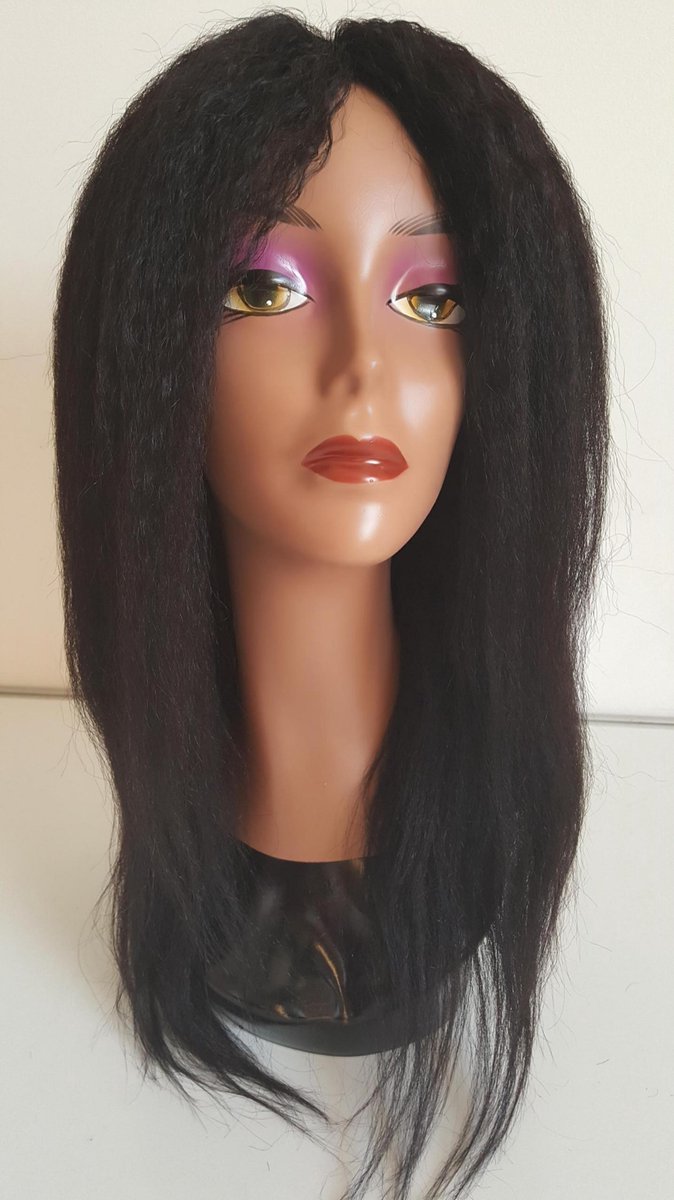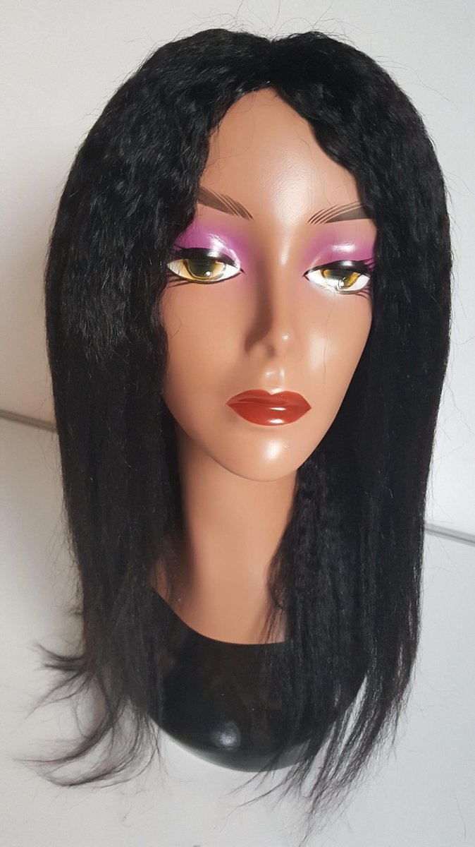 Braziliaanse Remy pruik - donkerbruine kinky rechte pruik 18 inch - real human hair - echte menselijke haren - none lace wig