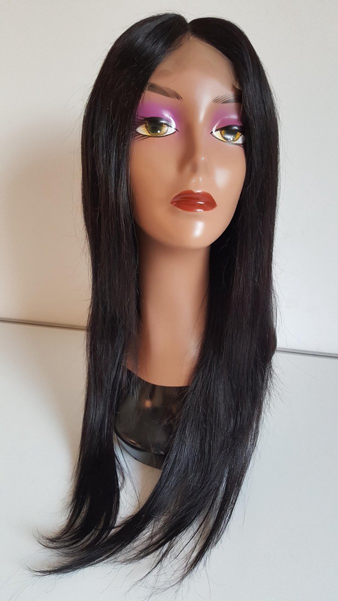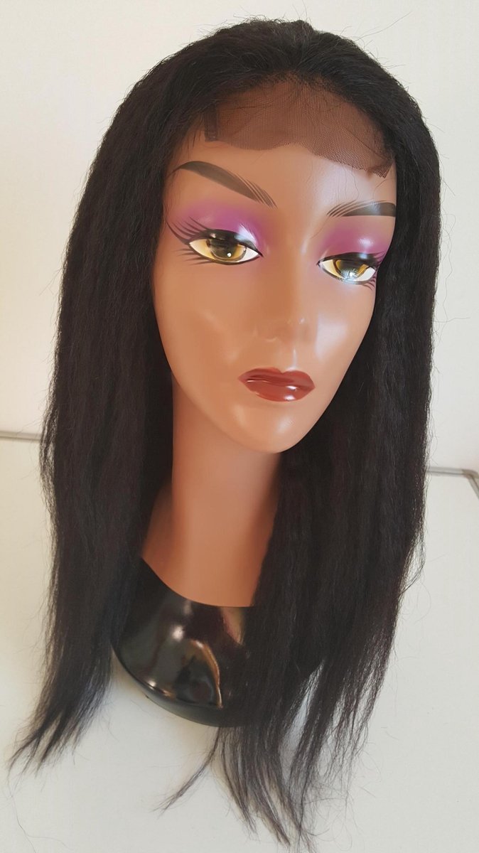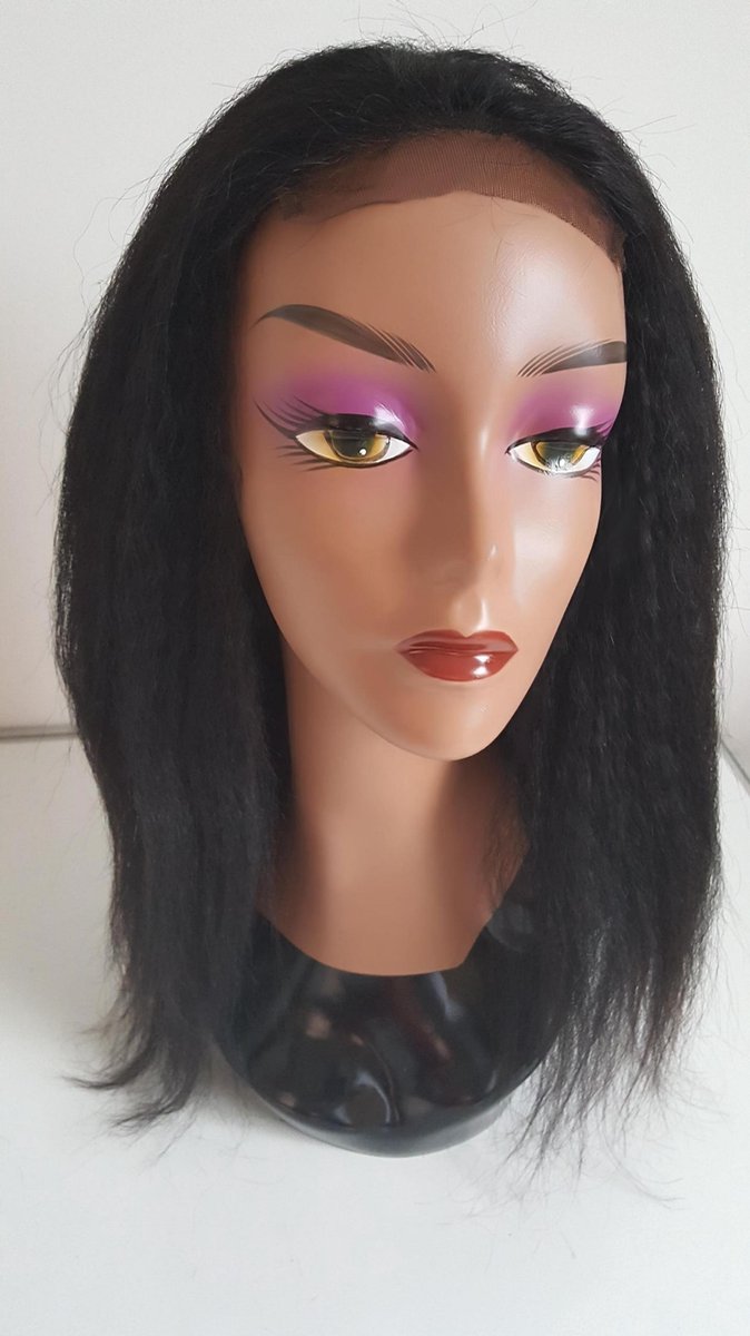 Braziliaanse Remy pruik - donkerbruine kinky rechte pruik 20 inch - real human hair - echte menselijke haren - Braziliaanse pruik - Braziliaanse haren - met kleine ("baby") haartjes op voorhoofd - 4x4 lace closure pruik