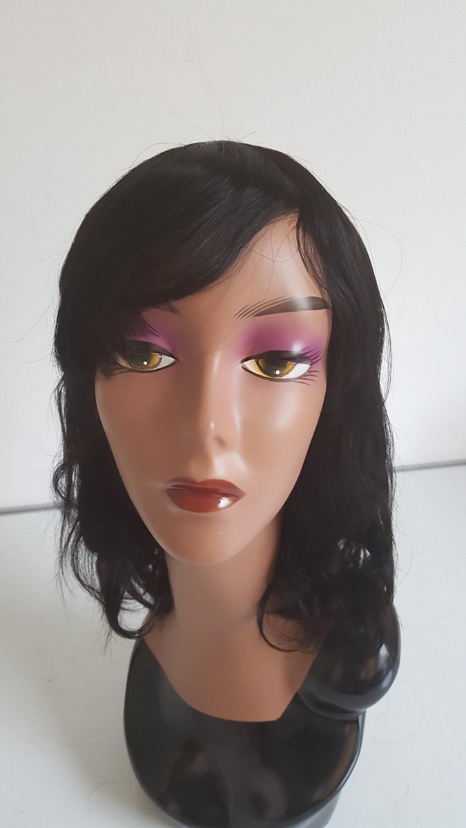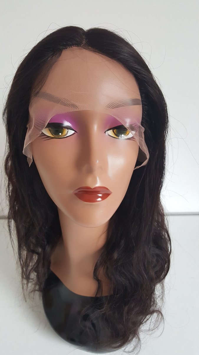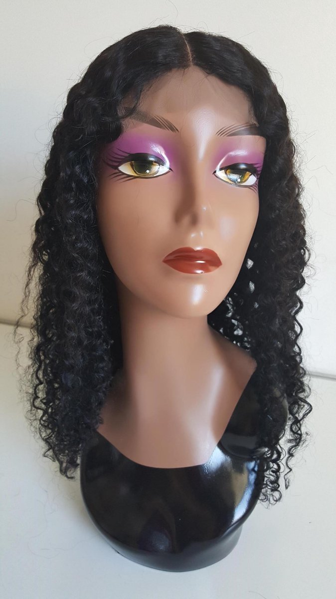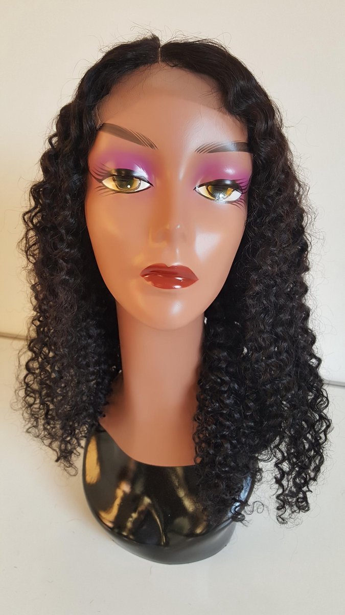 Braziliaanse pruik 20 inch - real human hair - natuurlijke donkerbruine kinky krullen - Braziliaanse pruik - echt menselijke haren - met kleine ("baby") haartjes op voorhoofd - 4x4 lace closure pruik