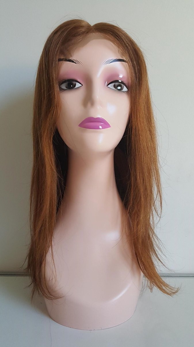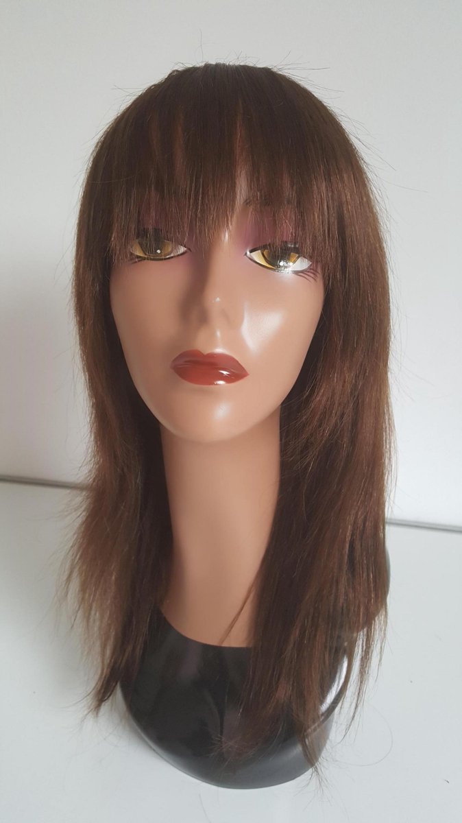 Braziliaanse Remy pruik 16 inch - real human hair - kastanjebruine rechte haren - Braziliaanse pruik - echt menselijke haren - met kleine ("baby") haartjes op voorhoofd - 4x4 lace closure pruik