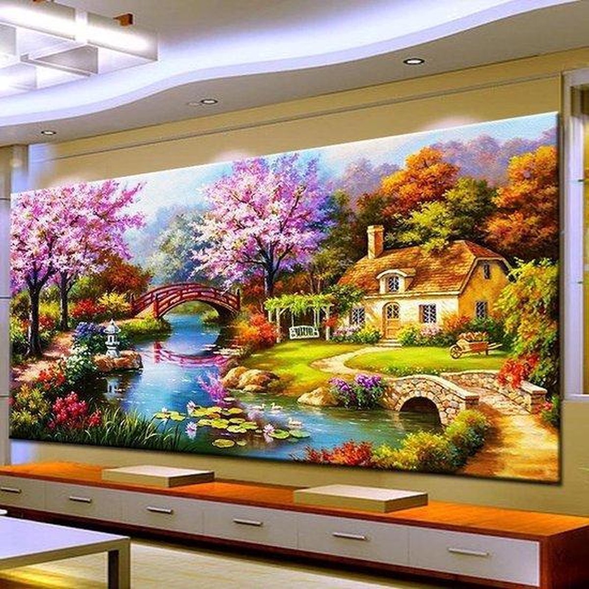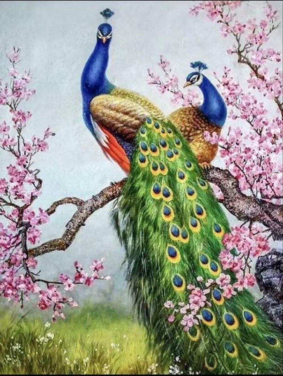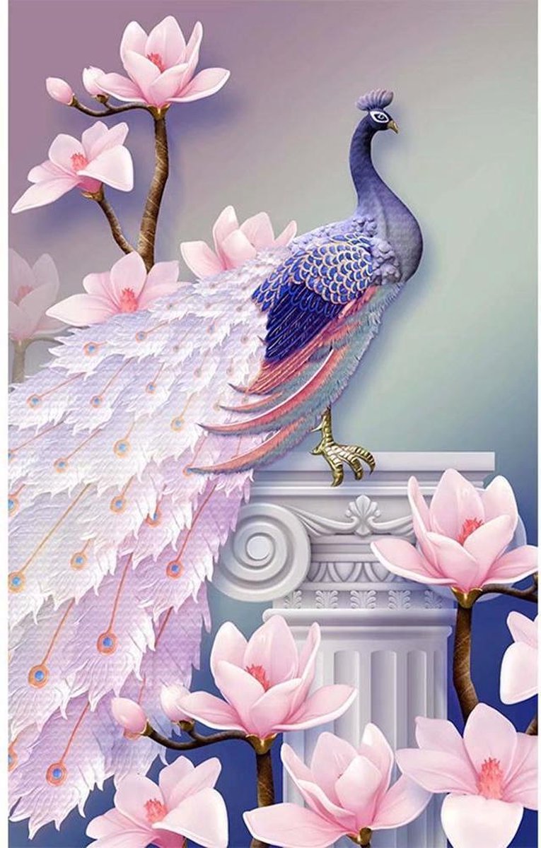 Diamond painting 40 x 50 cm paauw met bloemen volledige bedrukking ronde steentjes - paauw - dieren - vogels - direct leverbaar - nieuw - landschap - bloemen - landschap - siervogel - vogel